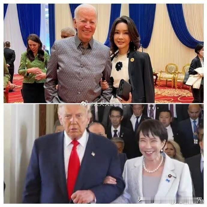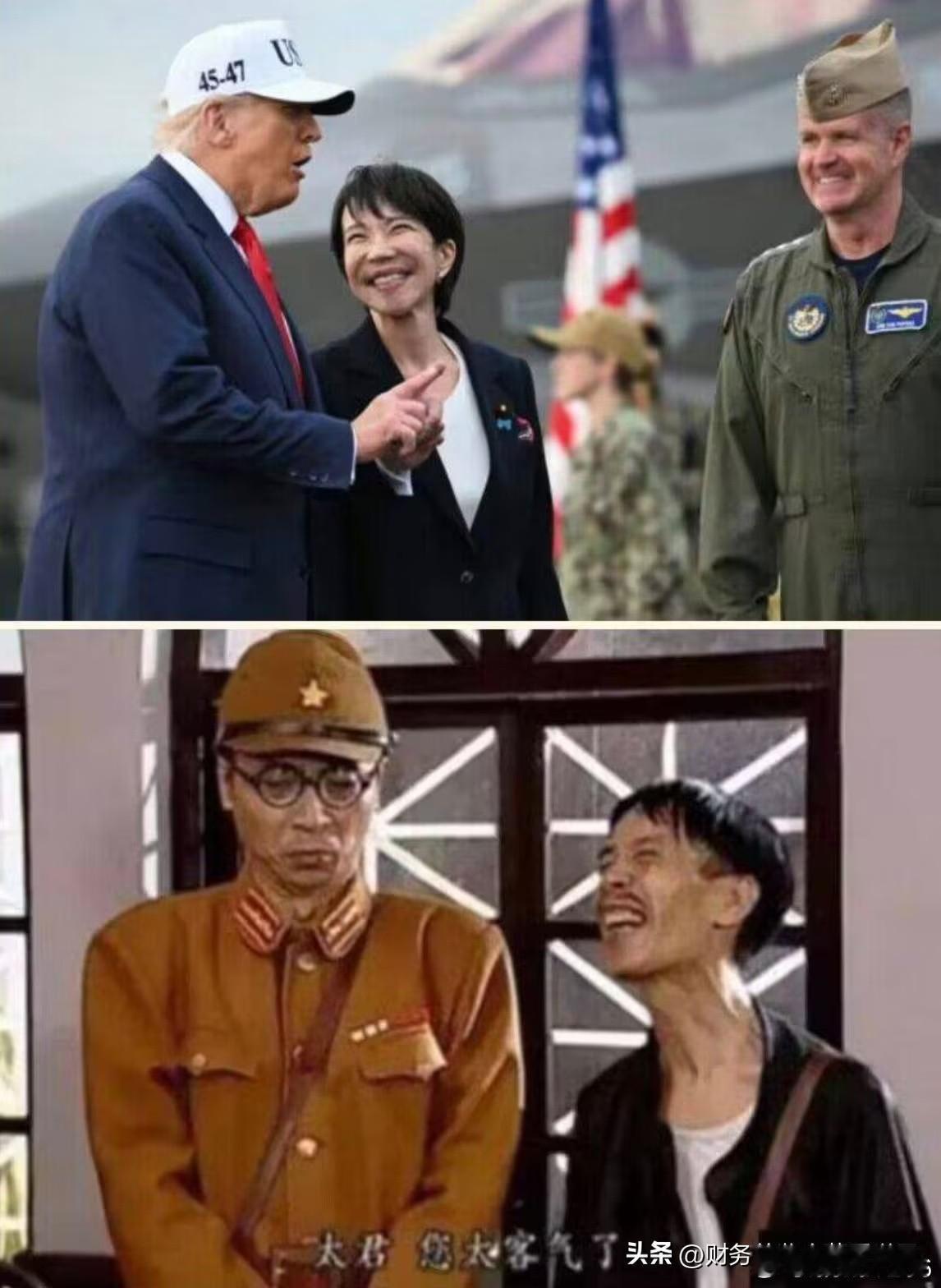 这三组照片,确实挺有意思。有人说,这是一脉相承。还别说,你仔细看看,还真有那么一点一脉相承的意思。不得不说,日本人这次针对性的推出一个女首相,还真在谄媚这件事情上,拔得头筹。别的不敢说,那两天美国总统反正是开心了。当然,此举也充分说明,日本也清楚地知道了自己的定位,只能跪舔!
