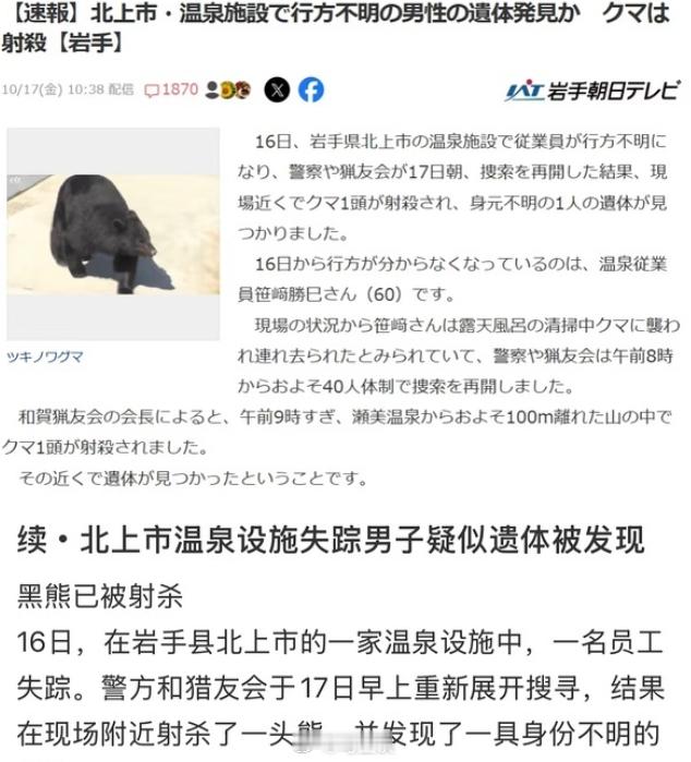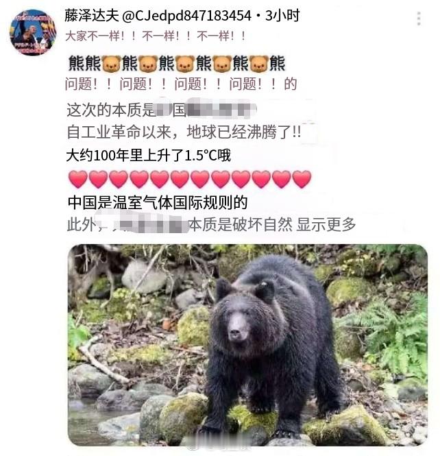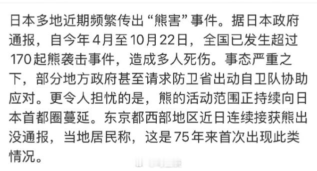 日本最近熊灾,被熊袭击过的人数破百,造成多人死伤,照理这是日本生态环境恶化的表现,但是日本网民轻轻松松就把锅甩给中国…[微笑]