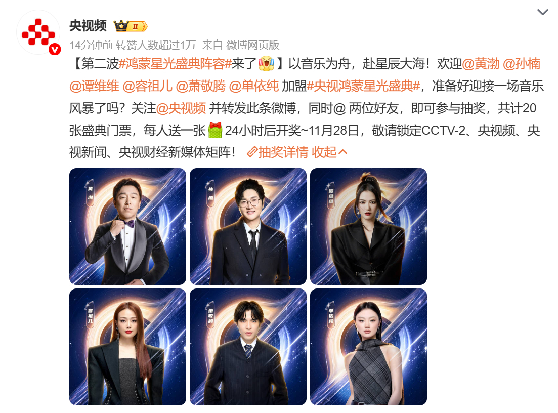 央视鸿蒙星光盛典真是长见识了,主持人和嘉宾阵容太强大了,明星荟萃,这些一看就要花不少钱,而且这还只是前两波,后面可能还有更多人,也就华为有这个财力和物力,可以搞这么一场“星光盛典”了。[中国赞]