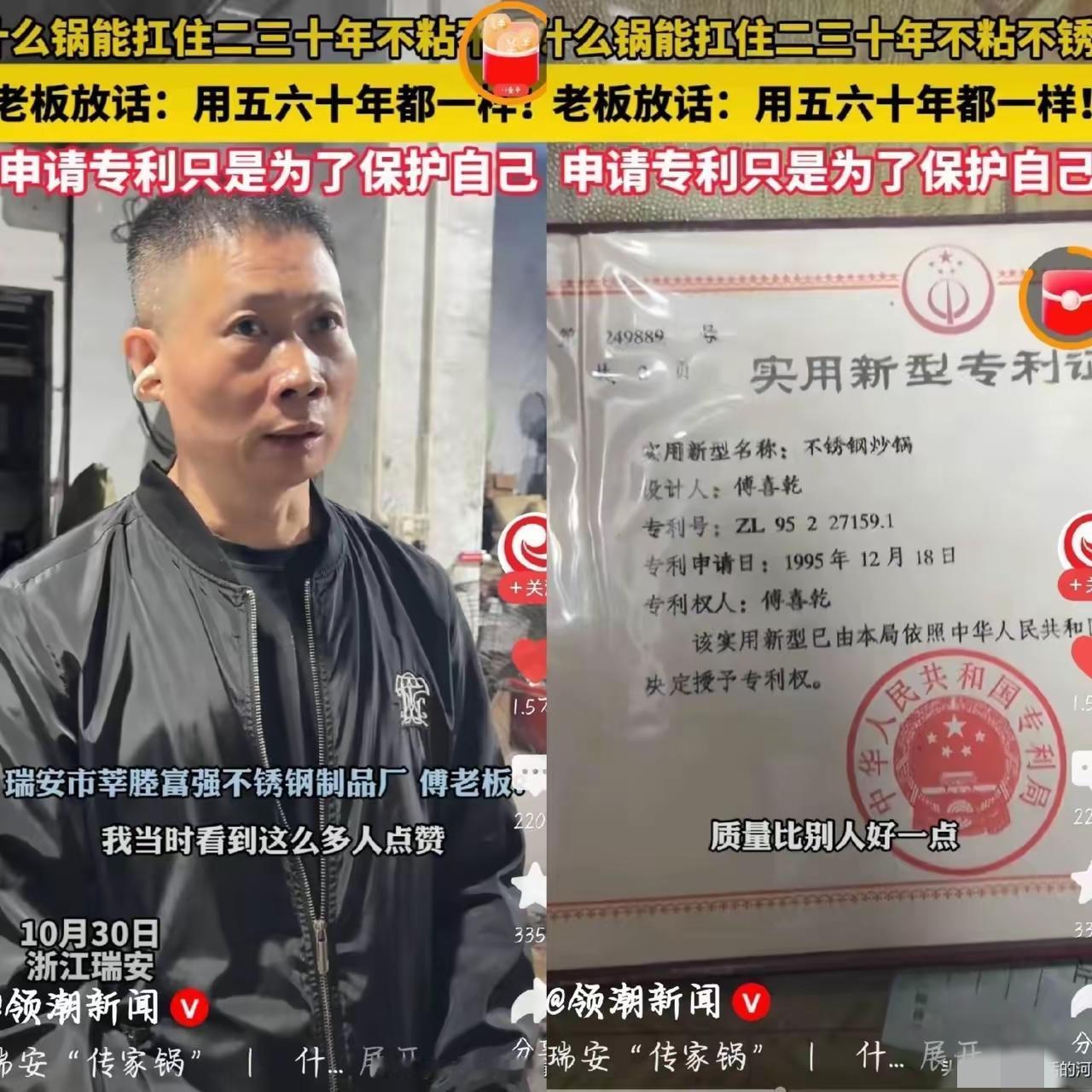 现在最疯抢的网红,居然是口“停产10年的老锅”? 谁能想到,打败一众新款的网红竟是口老锅!浙江阿姨晒出用了二三十年的炒锅,钢丝球随便造不生锈,炒鸡蛋还不粘锅,视频一出全网都在蹲链接。 顺着锅柄上的专利号一挖,才找到温州的老厂子。老板说当年成本涨了,宁肯停产也不偷工减料,设备放了10年都没扔。现在被网友催着复产,新锅直接把不锈钢加厚到1.1毫米,锅柄也换成更结实的激光焊接,预售才60块。 这哪是买锅,是给“长期主义”投赞成票!现在太多商家搞“短命”设计赚快钱,可大家早烦透了。这口锅的走红,根本是对“做一辈子好东西”的最好回应。 你家有哪些用了十几年的老物件?是不是比新买的还靠谱?老铁锅