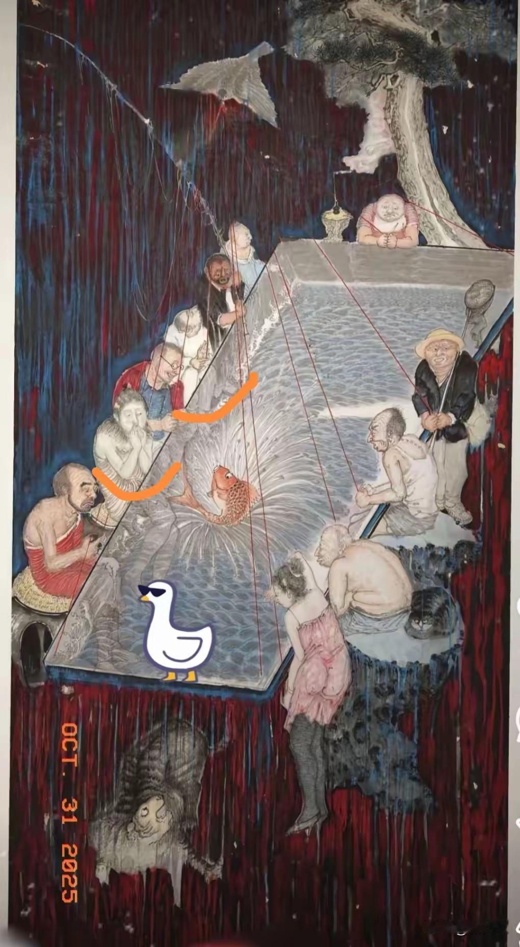 798的“钓鱼艺术”直接看懵 十二三个人围在池边甩竿 水里锦鲤刚被钓起,岸上的人却 画风诡异——有的敷衍摆手像应付任务,有的眼神游离压根没看鱼,还有的面带猥琐笑,活脱脱一副魑魅魍魉图。 这也能叫艺术?艺术该是触动人心的美,或是引人深思的表达,而不是把“怪异”当噱头,把“低俗”当个性。打着艺术的旗号堆砌猎奇元素,说白了就是在消费观众对艺术的敬畏。 真正的艺术从不用靠博眼球博出位,哪怕是小众表达,也该有内核和温度。这种让人看了不适的“作品”,到底是在探讨人性,还是单纯糟蹋艺术? 你觉得这算艺术吗?你心中的艺术该是什么样子?来评论区说说你的看法~