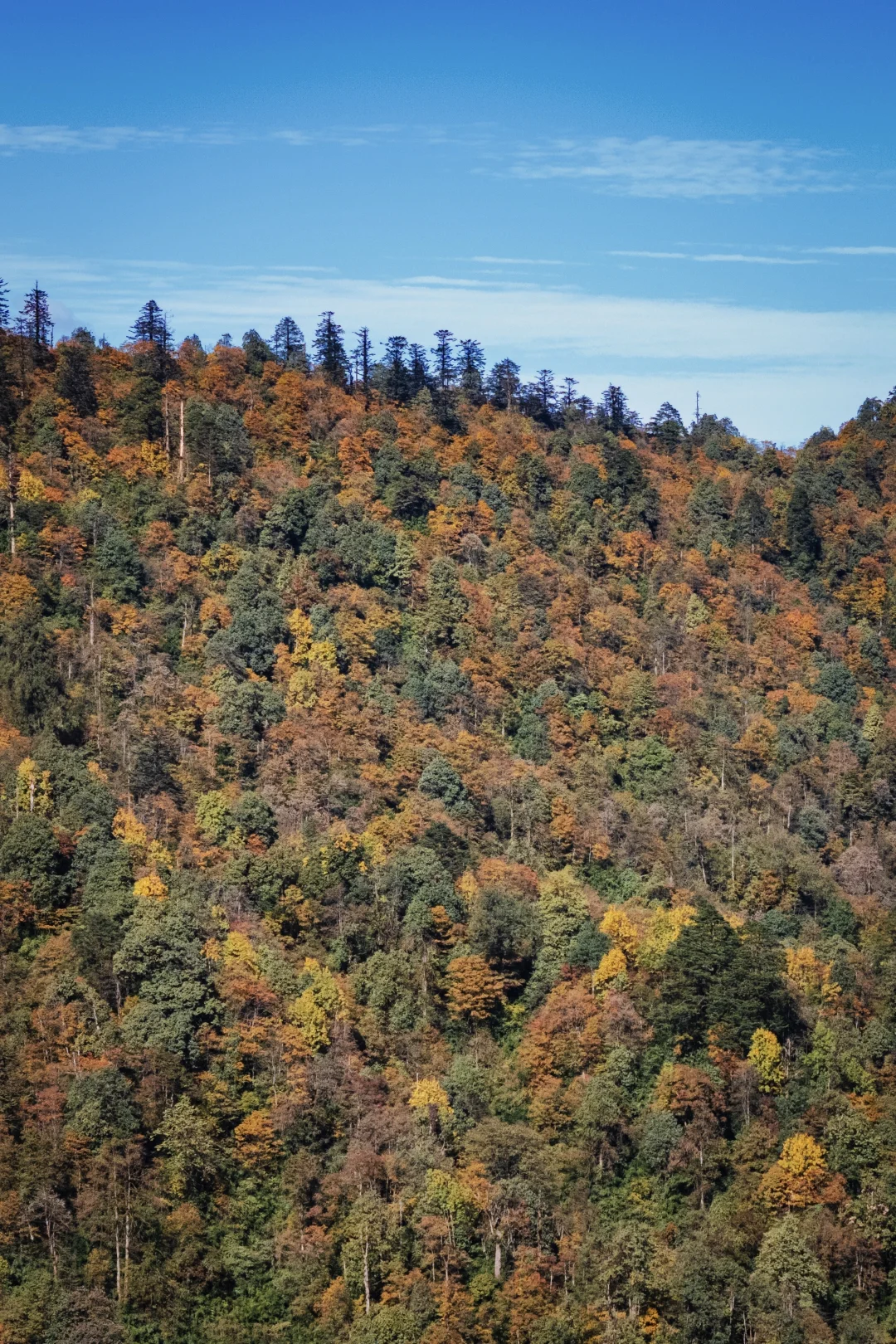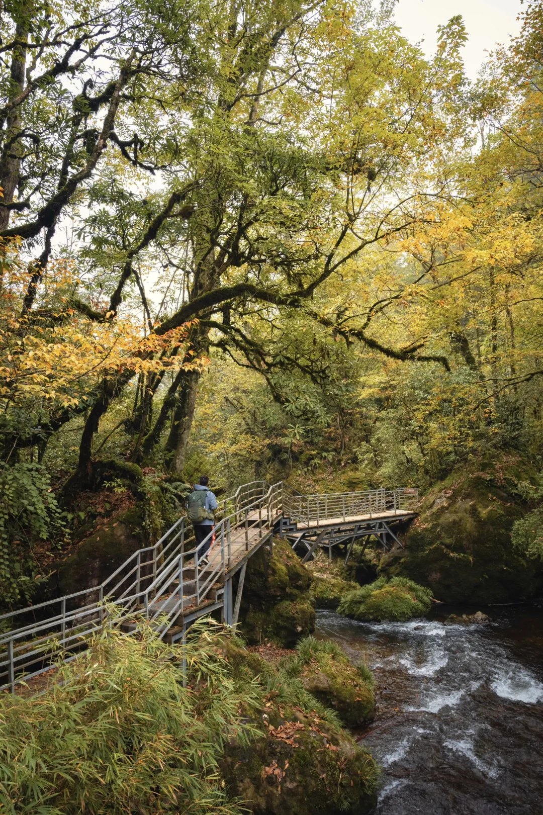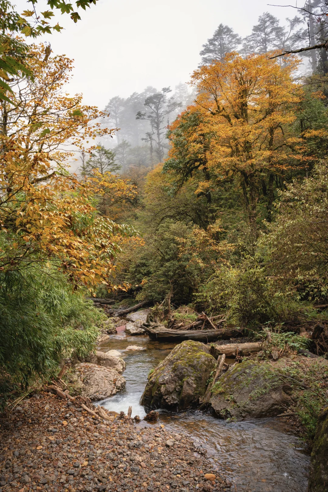 这是成都周边2.5h车程的赏秋徒步胜地,每年的10月中旬至11月中旬,龙苍沟的彩林便进入了最佳观赏期。置身山间,被深浅不一的红、黄、绿色的叶子包围。高大的乔木满山遍野,点缀其中的彩林,与溪流、瀑布构成了一幅斑斓的色彩画卷。