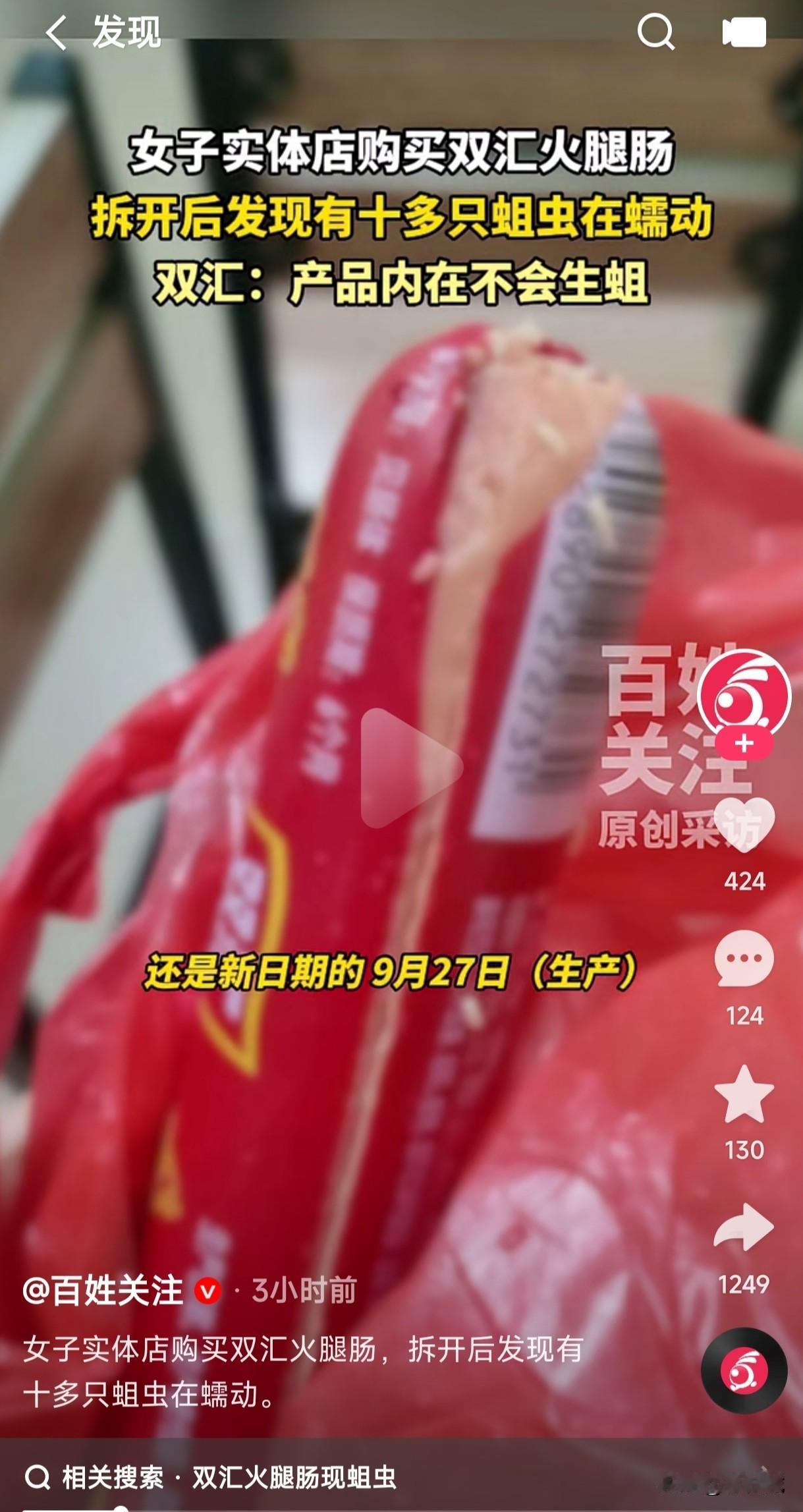 女子在实体店买火腿肠,拿回家拆开后居然发现有10多只蛆在蠕动,并且生产日期还是最