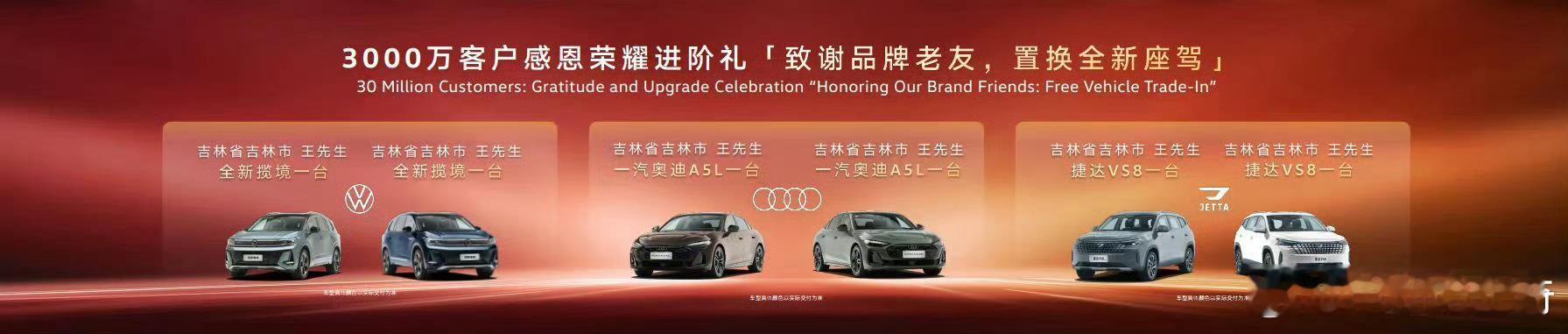 一汽大众批发式送车100台这活动也太爽了!直接喊老车主常回家看看,然后反手就送你一台新车开一年