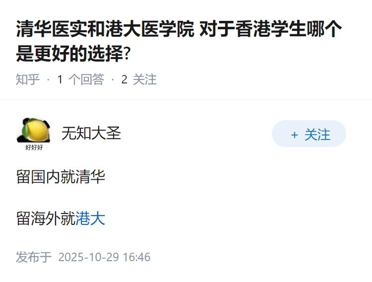 清华医实和港大医学院 对于香港学生哪个是更好的选择?