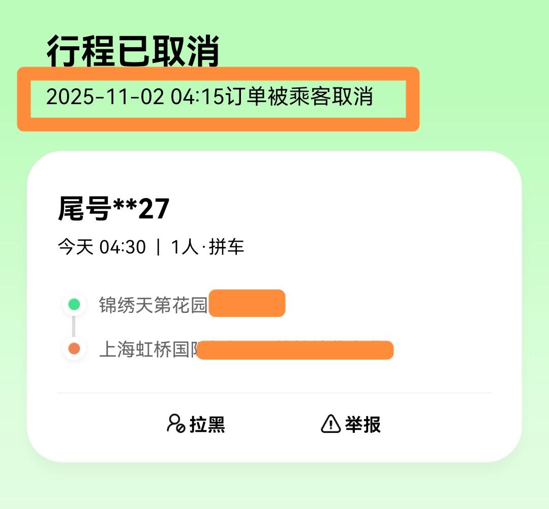 今天被一个乘客放鸽子了。昨天晚上邀请我接单,我问4点30出发没问题吧,她说没问题,然后让我接单。结果今天早上我去接她的时候,已经在路上了,乘客直接取消了订单。我在路上没有听到滴滴发来的取消订单的消息,结果我还开到了上车点[我想静静][我想静静][我想静静] 然后我又去接单,想着既然来了,不能空跑一趟吧。竟然看到这个乘客又下了一个订单,把时间推迟了,推迟半小时出发。搞不懂这人怎么想的。反正挺奇怪的。