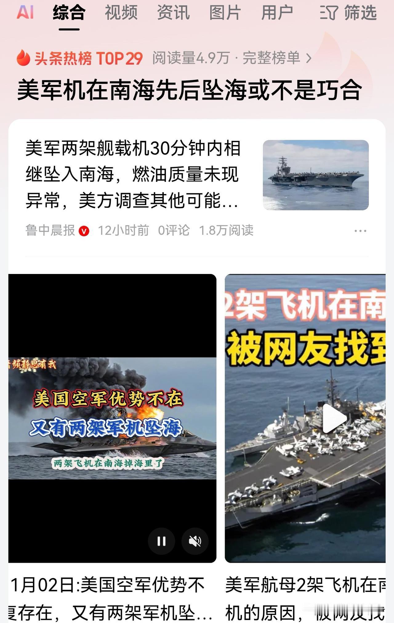 美军一架大黄蜂战斗机,还有一架海鹰直升机接连坠海。 特朗普给出的解释是燃油有问题。 但是尼米兹舰队的航空燃油管理员否认这一说法。 航母燃油保障分队的官兵在接受媒体采访时明确的表示。 出事的两架飞机所加注的燃油和其他的飞机一模一样。 其他所有的飞机都没有出事故,唯独这两架飞机出了事故。 都是同一个储油罐里抽出来的航空燃油。 怎么会有截然不同的命运呢? 尼米兹号的官兵断然否认了特朗普的说法。 目前该储油罐的航空燃油已经被提取了样本送到了美国各大实验室进行分析。 到目前为止都没有任何消息流出。 很大可能特朗普是在胡说。 那么到底这两架飞机是因为什么原因坠落的呢? 一种说法是由于美军受到中国威胁论的影响。 在南海执行任务,他们有一种恐慌的心理。 手忙脚乱,结果造成了两架战斗机接连坠海。 这种可能确实是有。 但是没有办法解释的是为什么在一个小时内连续两架战斗机坠海? 你又不是战争期间。 按理说,第1架直升机坠海之后,指挥官就应该停止所有的飞行任务。 迅速打捞抢救,然后查找事故的原因。 确认安全之后才可以起飞其他的战斗机。 那么为什么在直升机坠落的原因没有搞明白的情况下。 就要起飞大黄蜂呢? 难道当时的美军真的有一种迫在眉睫的危险困扰着他们吗? 风声鹤唳,草木皆兵啊。 很有可能当时的情况非常的复杂。 有一些特殊的情况让美军的指挥官误认为自己遭到了攻击。 有人说电磁干扰。 心净我个人更愿意说是一种莫名其妙的干扰。 咱们别什么事情都往自己身上揽。 你往外星人身上推也别往自己人身上推啊。 大胆假设,小心取证。 也许当时尼米兹号并没有遭到咱们的电磁干扰。 但是有可能咱们一直在很近的距离观察着他们。 这就引起他们官兵的高度紧张。 这种无形的压力让他们有些手足无措了。 当直升机出事之后,很有可能指挥官误判断是遭到了某些袭击。 然后紧急命令大黄蜂升空备战。 结果大黄蜂的飞行员更紧张了。 可能那一刻他们真的以为自己遭到了致命的攻击。 手忙脚乱下两次事故就在一个小时之内发生了。 如果事实的真相是这样的话。 那么大漂亮可就更丢人了。 风声鹤唳,草木皆兵啊。 直接把自己吓死了。