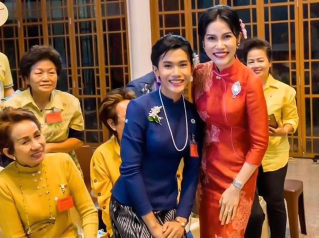 诗妮娜母亲女生男相,和她合影的那女子也女生男相,泰国人妖如此盛行,她们俩这样子会