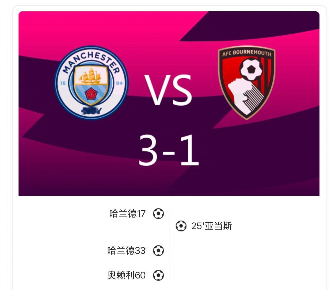 【战报:曼城3-1樱桃,哈兰德双响,谢尔基两助攻】比赛第17分钟,谢尔基助攻,哈兰德单刀破门。25分钟,亚当斯乱战破门。33分钟,哈兰德梅开二度。60分钟,奥赖利再下一城。
