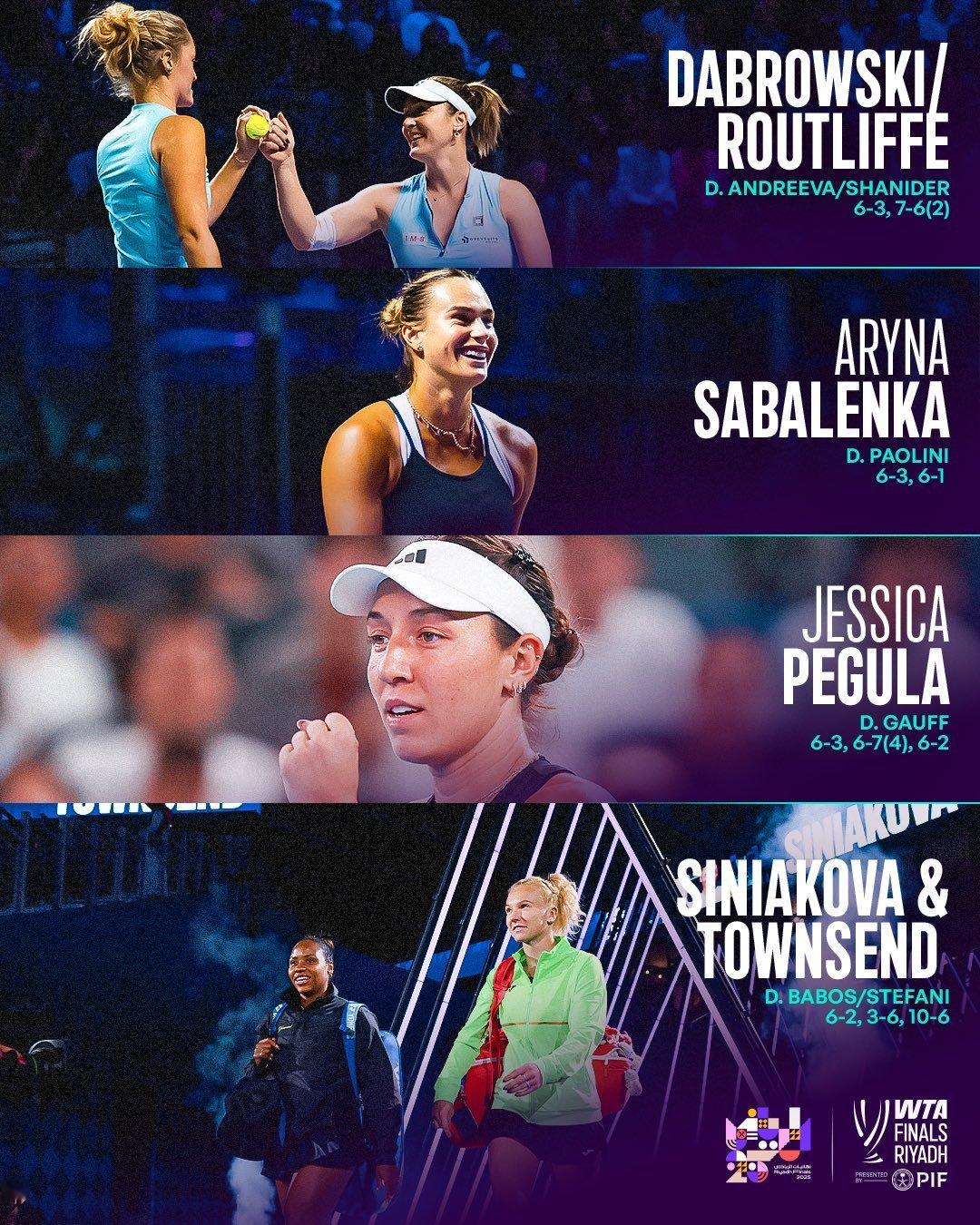 利雅得WTA年终总决赛 WTA年终总决赛小组赛第一轮战罢,萨巴伦卡、斯维亚泰克与莱巴金娜全部2-0赢球,高芙与佩古拉激战三盘卫冕首秀落败。