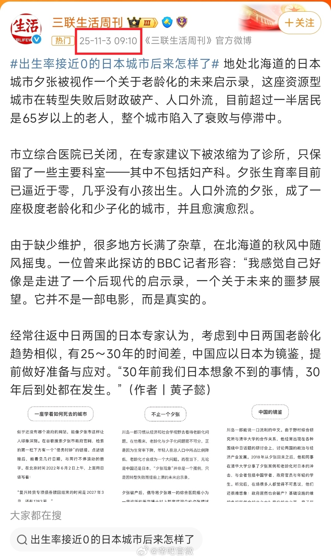 出生率接近0的日本城市后来怎样了 22年发了一遍,今年又发一遍。日本夕张是一座典型的资源型小城,靠煤矿工人发展起来,后来随着当地煤矿产业衰退,人口自然就流失了。