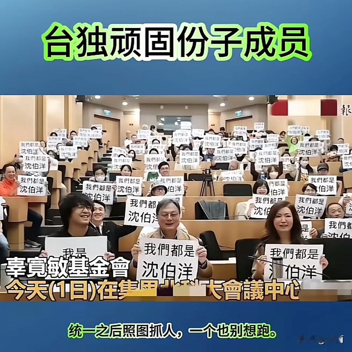 臭味相投。沈伯洋和辜宽敏基金会团伙们还没有意识到问题的严重性。 沈伯洋被重庆警方立案审侦查后,不仅没有迷途知返,反而愈加的不知廉耻。 他找来一帮乌合之众聚拢在一起来支持他。气焰嚣张的说“我们都是沈伯洋”,“我是顽固台独分子”。 而这次我们对‘台独’顽固分子的首次出击,绝不可能只是虚晃一招,虚张声势,沈伯洋们必将付出代价。 识时务者为俊杰。 中华民族必将统一,也一定会统一。 而这些牛鬼蛇神公然挑衅国家底线,伤害民族感情,搞分裂的败类们必将受到严厉的惩罚,不会有好下场。