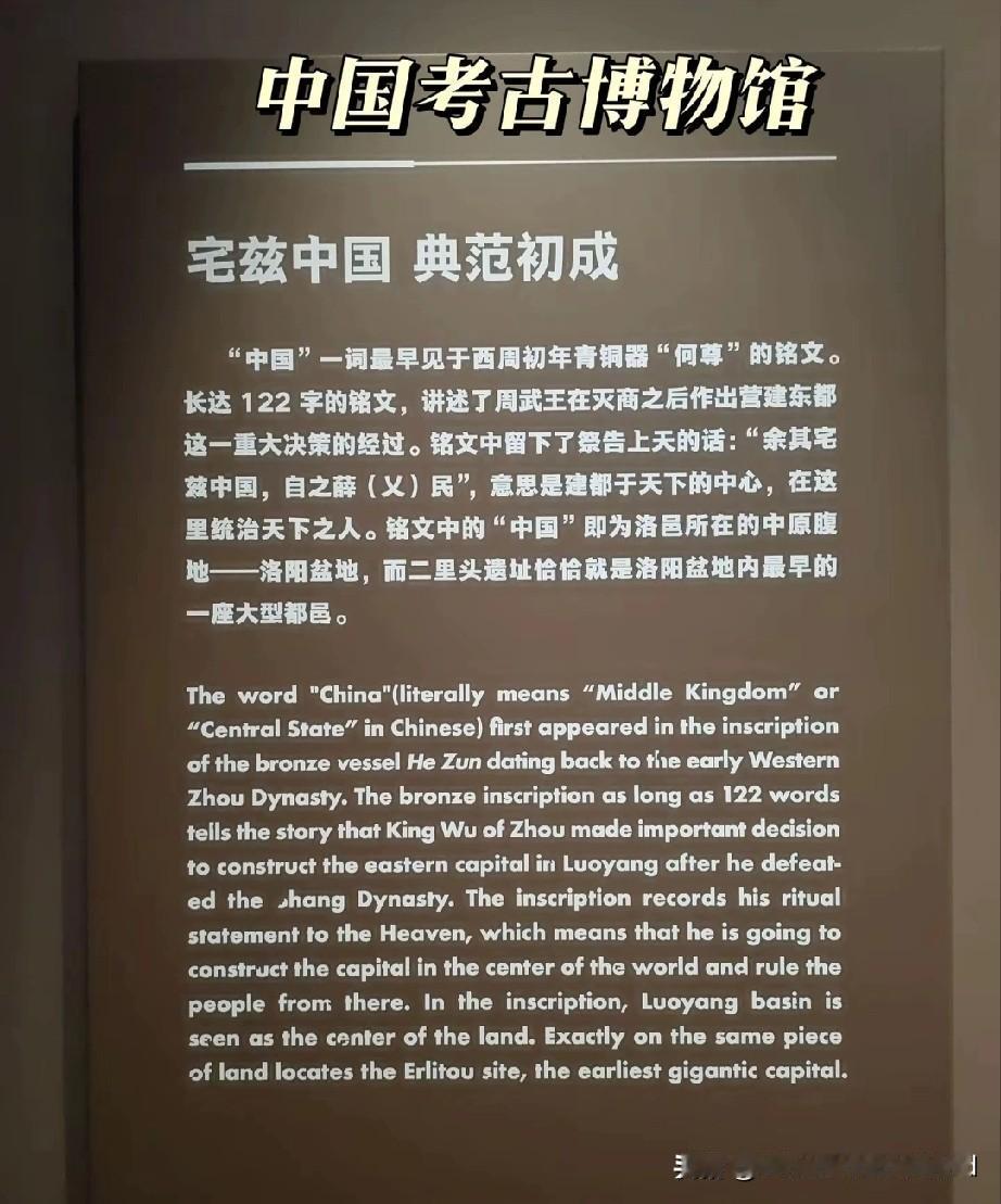 何尊铭文,宅兹中国。 最早的中国到底指哪里? 1、中国国家博物馆。 删除有关洛邑