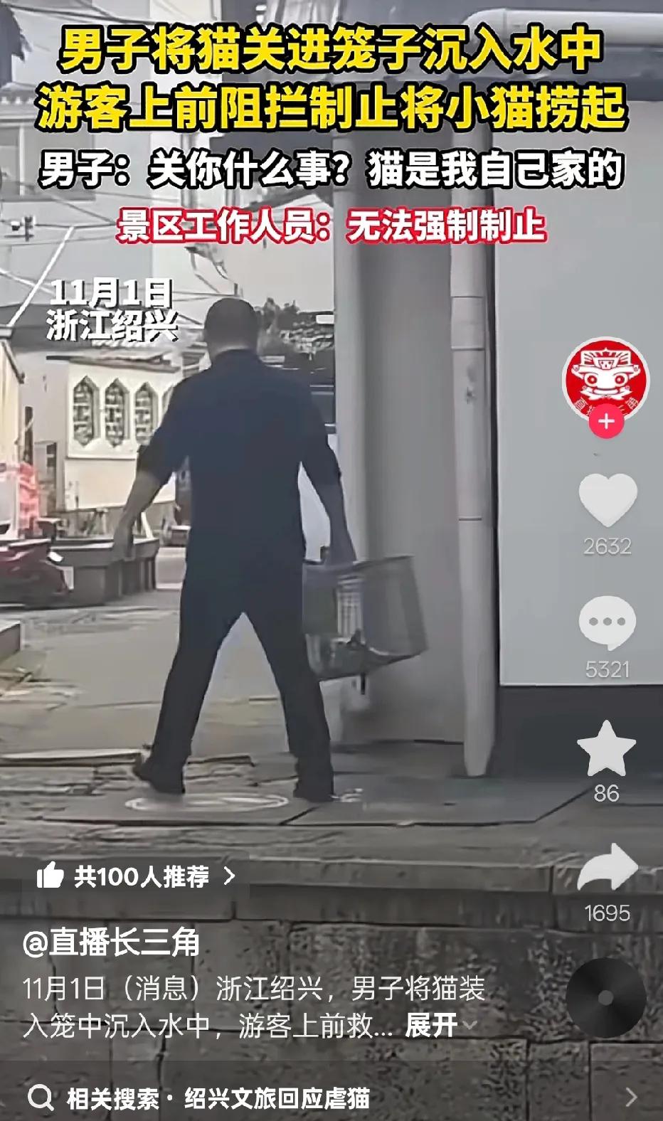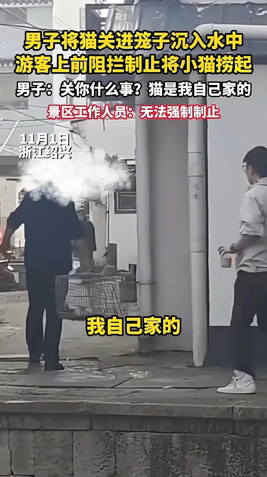 这种行为不就是虐生么?自己家的猫,就可以随意践踏它的生命?最无奈的是,还拿他没办法,男子说:关你什么事!表示猫是他自己家的!真的是看的气愤!大家好像还不能强行制止他的行为。 不知道这位大叔他出于什么目的,要把猫关到笼子里,丢水里,看样子是要弄s猫,穿的这么得体,怎么心这么狠呢,哎!不知道猫被他带回去后,结局又是怎样?