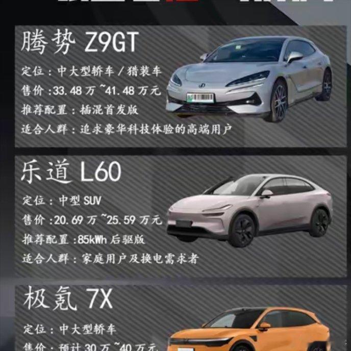 这三款各具特色的新车——腾势iconZ9GT、乐道L60和极氪7X,让人眼花缭乱,怎么选择确实是个难题。