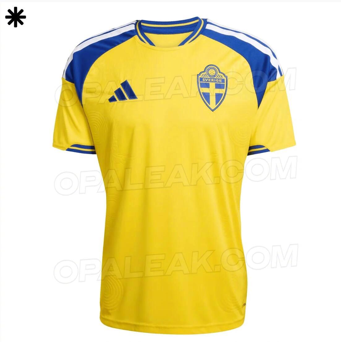 球衣网站Opaleak发布了瑞典队2026世界杯主场球衣的谍照,这款球衣的主色调为黄色,同时肩部区域以蓝色为主。