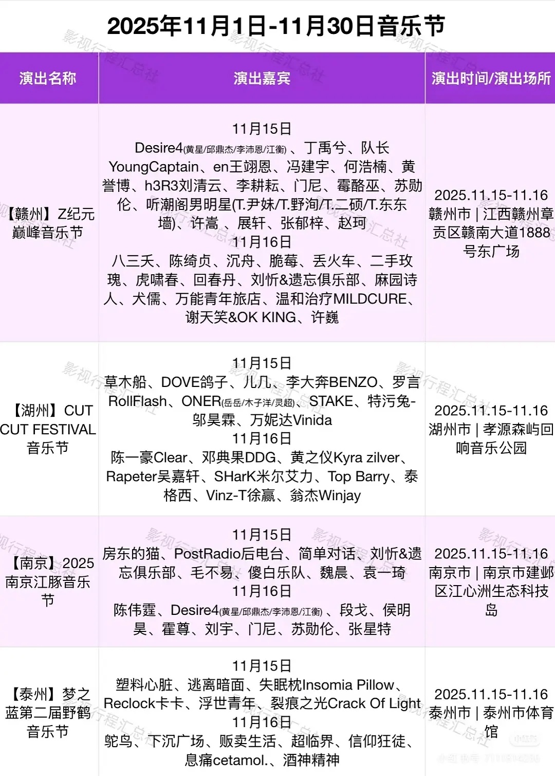 11月竟然有30场音乐节,看了一下阵容有几场还真的挺吸引人的[思考]