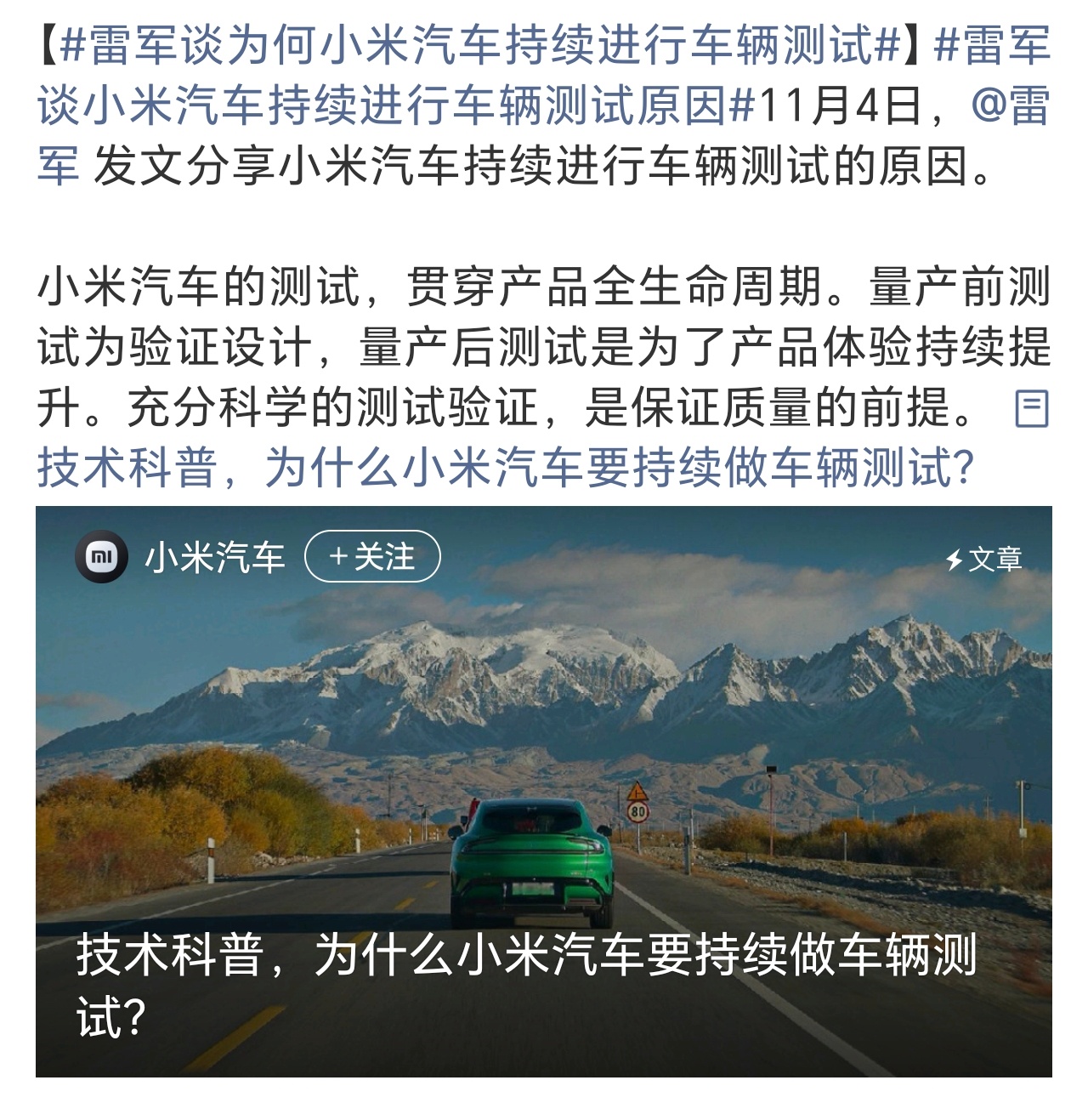 雷军谈为何小米汽车持续进行车辆测试所以,这说的是最近争议不断的准冬测吗?