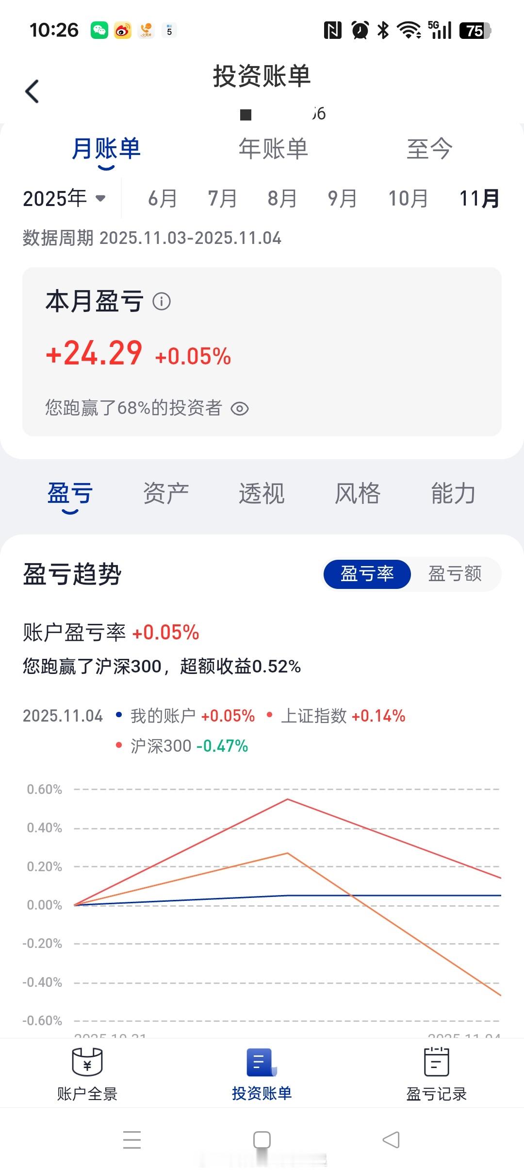 我的两融主账户,这个月赚了24元,截至昨天,我跑赢了68%的人。