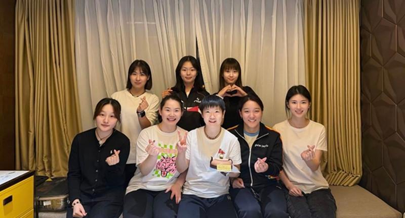 一起为莎莎庆生, 来看看莎莎的“姐妹团”都有谁! 11月5日,已到达澳门备战全运的、莎莎的好姐妹们纷纷晒照,分享了大家一起庆祝莎莎25岁生日的欢乐场景,她们为莎莎准备了“茶壶形”蛋糕,还一起合影拍照,笑得都非常开心。 那么,在这张合影中的人,你都认识吗? 她们都是莎莎的好姐妹、老队友和默契搭档,都很多年了,关系一如既往的亲密,她们分别是:孙铭阳、何卓佳、王添艺、刘炜珊、姚睿轩、朱梓予和李雅可。 这“姐妹团”的阵势可以说是相当大了[大笑] 莎莎的生日恰逢赶去全运前,所以她一天过了两次生日,在家与爸妈过了一次,到澳门后,好姐妹精心准备,又给她过了一次,这是两种幸福,是不同的感受,但都给莎莎带来了生日快乐。 也希望这些快乐和祝福,能为莎莎接下来的比赛增添好运,争取有新的突破。