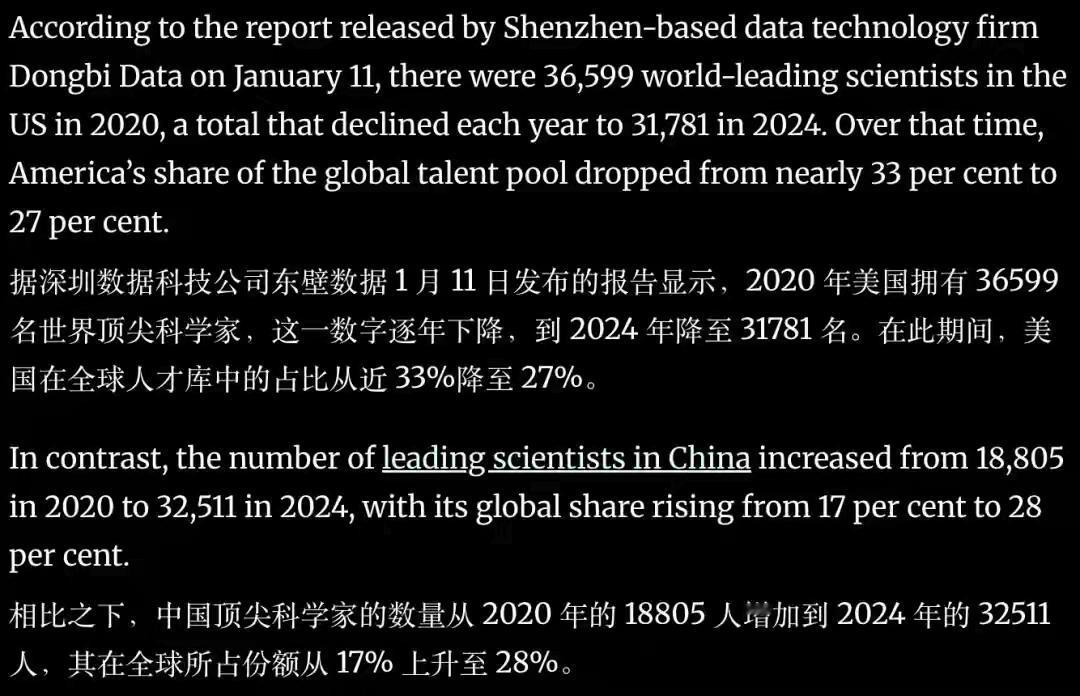 中国科研正告别「数量取胜」,以质量与领导力实现从跟跑到领跑:国际合作中领衔比例迅速上升,正在与美欧趋于均衡。人工智能、先进通信、半导体与量子等关键赛道全面加速,顶刊与高被引成果、顶尖人才同步跃升。依托「一带一路」科学网络与评价改革,中国在开放合作中放大影响力,正重绘全球科技版图。 中国科研正经历重要转型,从以数量为导向逐步迈向以质量和创新领导力为核心的发展阶段。具体表现包括: 领导地位提升:在国际合作中,中国科研项目的领衔比例迅速增加,显示出在全球科技舞台上的影响力不断扩大,逐渐与美国和欧洲趋于平衡。 重点领域突破:人工智能、先进通信、半导体和量子科技等关键领域加速发展,取得了显著的技术进步和创新突破。 卓越成果与人才培养:顶级学术期刊的发表数量与质量提升,高被引论文不断增加,顶尖科研人才的培养与引进同步推进。 科技网络与评价机制:依托“一带一路”科学网络,推动国际合作与交流,同时通过科研评价体系改革,优化科研生态,增强创新驱动力。 全球科技版图重绘:中国在开放合作中不断扩大影响力,积极参与全球科技治理,推动构建更加公平、合作、共赢的国际科技创新格局。 总体来看,中国正以高质量发展和科技领导力为目标,推动科技创新迈向更高水平,成为全球科技创新的重要引擎。尖端的科研能力 科研竞争力排名 国家科研实力