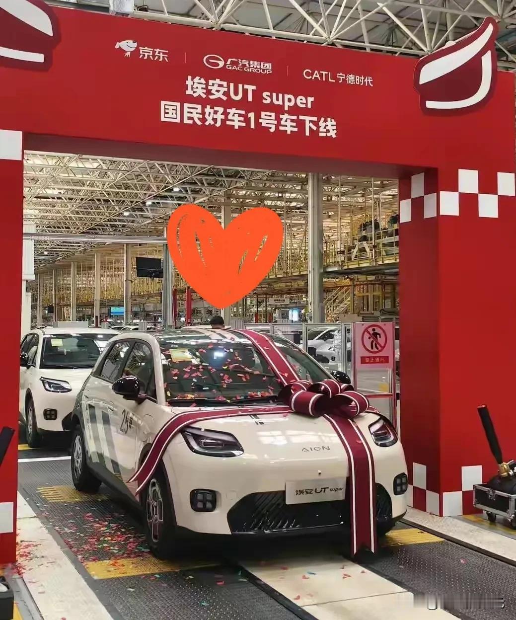 好消息,好消息! 京东第一台车下线啦 由京东,广汽集团,宁德时代联合打造的“国民好车”埃安---UT Super1号车在长沙的广汽集团工厂正式下线 工作人员称最快53秒就能生产出来一台车,这造车速度真是太快了[赞][赞][赞]