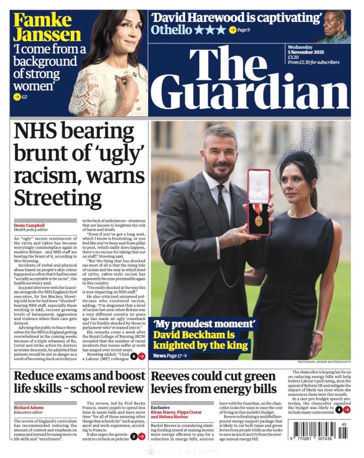 贝克汉姆被封爵消息占据各大头条,在巴西的威廉只占据了一版📰
