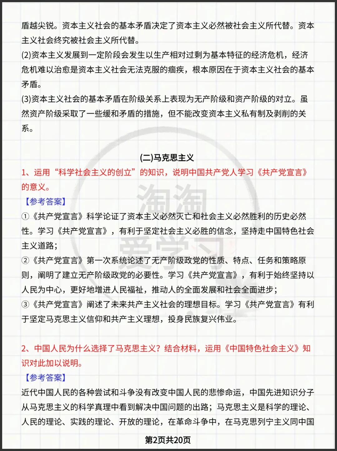 薯队长爸爸求流量 复习资料 高中资料 高中政治主观题 答题模板 高中政治 政治 高考政治 高中政治笔记 高中政治必修一