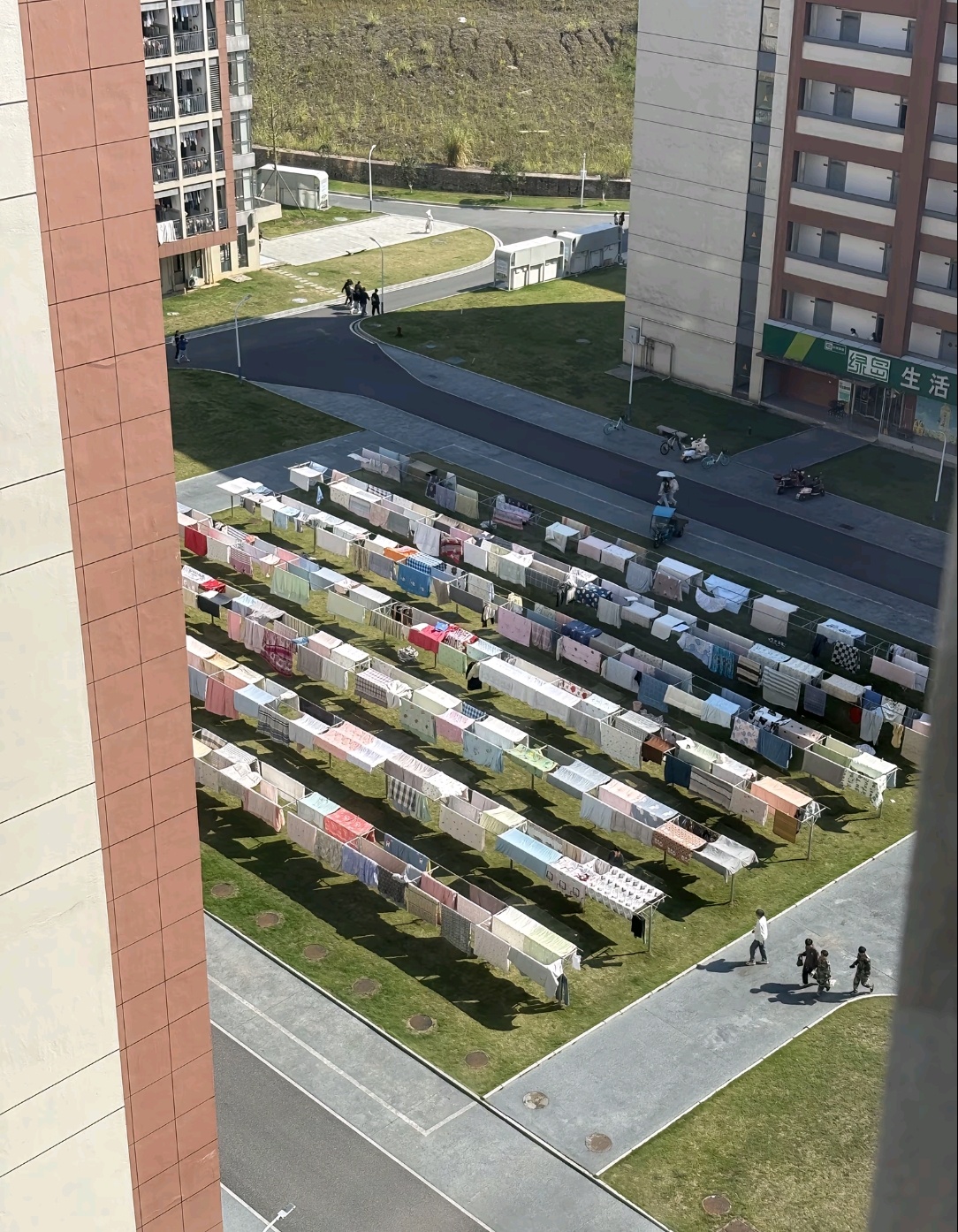 大学生有自己的丝绸之路一到晴天楼下就晒满了被子感觉穿梭在里面一定会香香的[柯基]