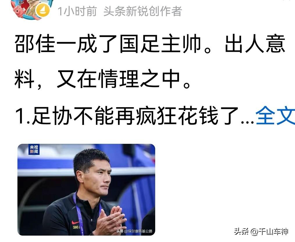 为何邵桂一当选国足主教练曝光后,球迷反应的出奇的平静? 放在以前,谁当选国足主教练后,网上讨论肯定很热闹,夸赞的,差评的,说啥都有。 而今天足协公布了国足新的主教练后,大家反应很平淡,其中不少人觉得选个本土教练是对的,无论他是张三还是李四? 几十年来,我们花了那么多钱,请来包括世界名帅里皮在内的几十名外国教练,结果怎么样?冤枉钱花得成火车运,但什么问题都没解决。国足还是江山依旧,甚至一茬不如一茬。 学费教的太多了,让我们得出一个结论,以后国足选帅,还是国产教练最好。事实证明,神仙来了也救不了国足,外国教练给国足的帮助并不大,非常有限。而国产教练虽然不能说比外国教练水平高,但至少省了一大笔费用,不再像以前里皮他们那样,几年挣了多少亿。