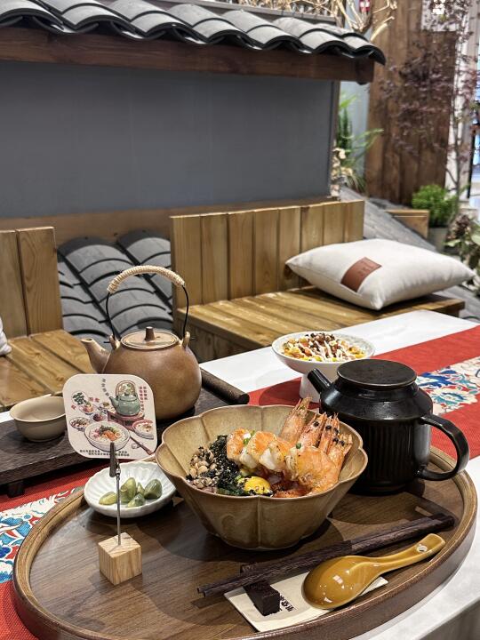 治愈茶泡饭 绝对是夏日开胃的神仙存在 🥣 用勺子🥄轻轻拌匀所有食材 让茶汤、米饭、配料充分融合 . 一口下去——米饭的温润、茶汤的清香、大虾的鲜嫩/三文鱼的鲜香、海苔芝麻的香脆…层次超丰富!