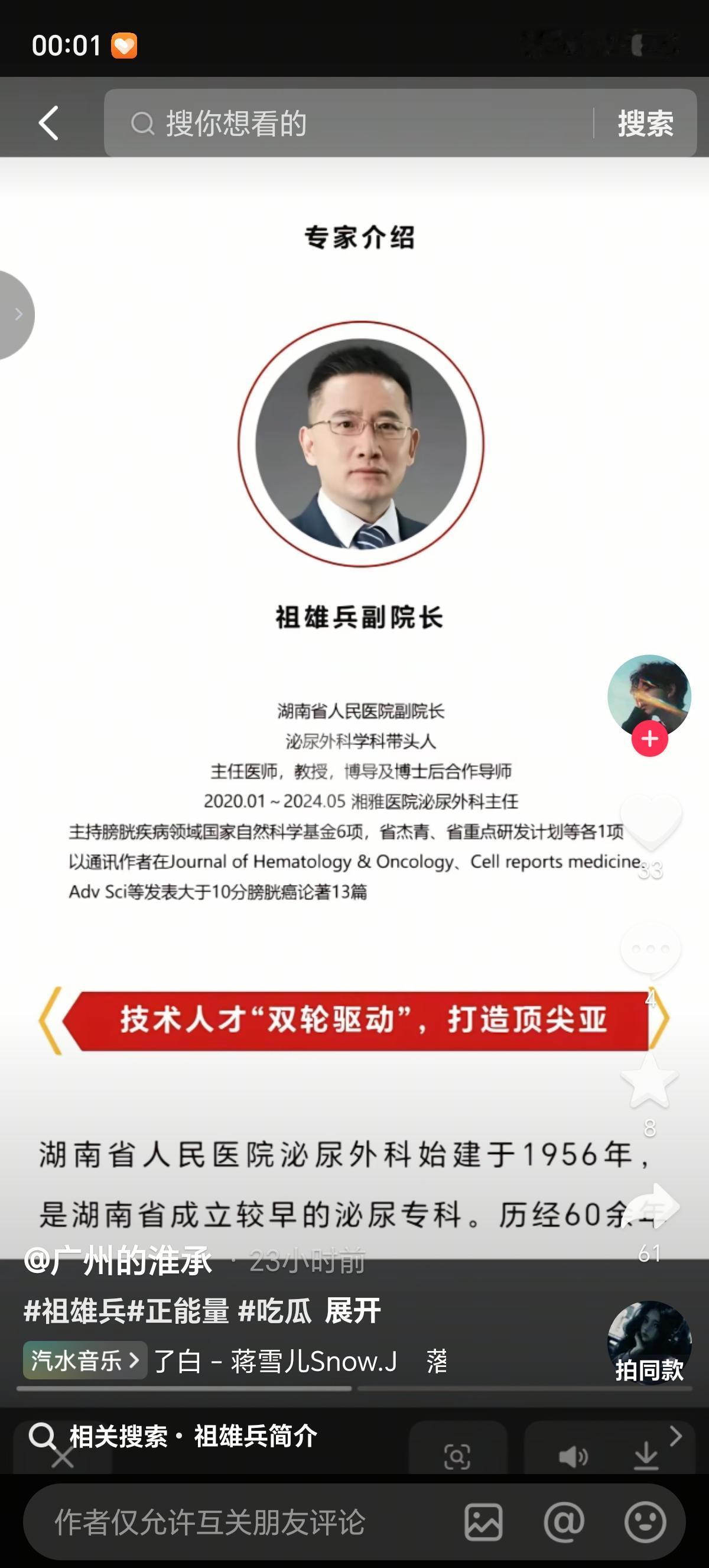 这俩人霸屏了,给我推送的都是他俩,都要看不见别人了, 他俩一个研究泌尿系统,一个研究眼科的,天天在一起探讨学术问题是可以理解的。就是地方找的不妥当,有点占用公共资源的嫌疑,这是把工作的地方当成自己第二个家了,可以理解。 都这样了迫不及待的需要找对方一起探讨人生了,就赶紧把婚结了吧,何必偷偷摸摸的呢,光明正大的多好呢。都是那么的优秀,博士毕业都得30多了,俩人年龄相当,男的50,女的也不年轻了,关系都公开了,现在结婚还来的及生孩子,挺好的。