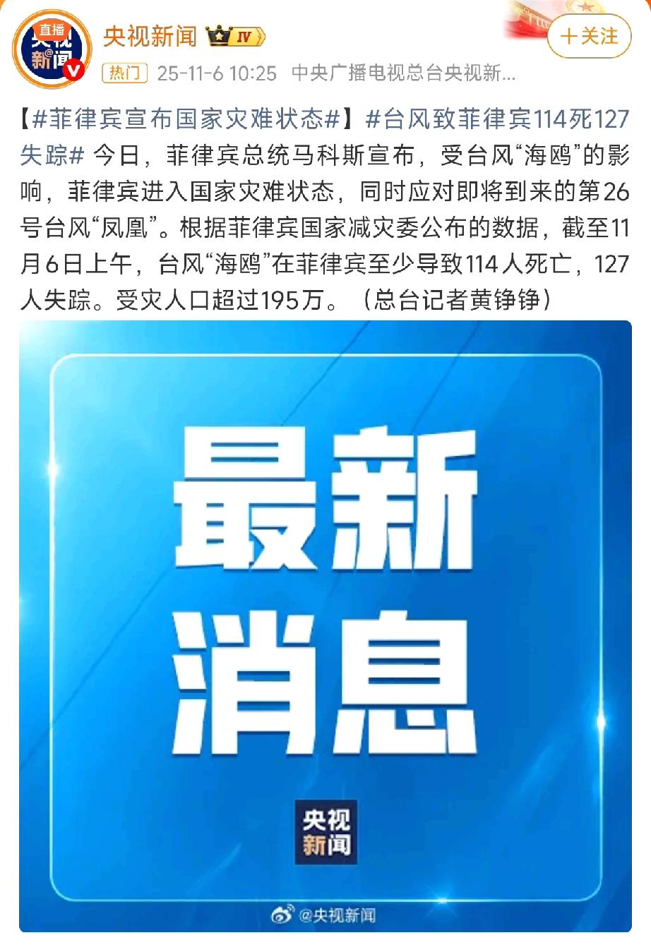 菲律宾刚刚全国进入灾难状态了。 马科斯总统6号签的命令,台风“海鸥”已经造成114人遇难,127人失踪,近两百万人受灾。 灾情确实触目惊心。一千多间房屋被毁,半数国土电力中断,连救灾的军机都坠毁了。 可仔细一看,这背后问题更让人揪心。政府去年砍了民生预算去搞国防,现在洪水来了,脆弱的基础设施根本扛不住。 天灾难免,但人祸最伤。救灾不仅是拼速度,更是对治理能力的考验。真心希望救援通道畅通,灾民能早日回家。