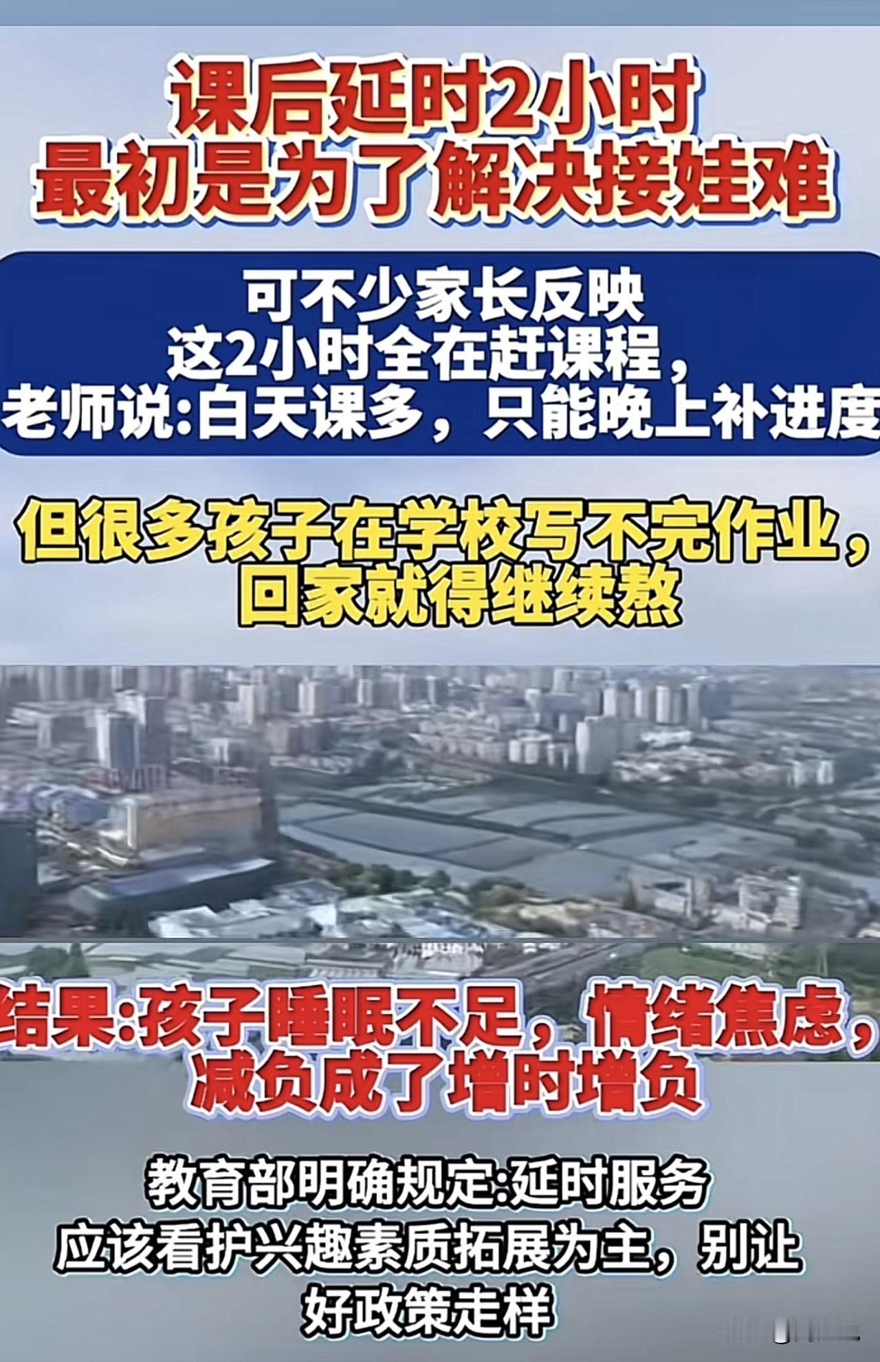 #媒体:莫让课后服务“增时又增负”#课后延时2小时,最初是为了解決接娃难,可不少