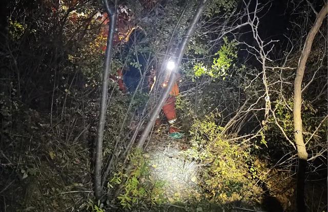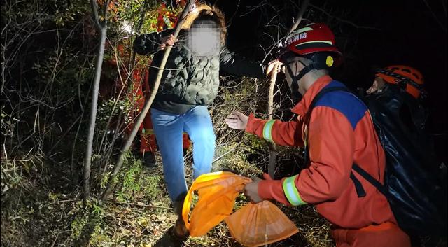 19时53分,救援人员终于听到被困者的呼喊声。当时被困者身处地势较高处的灌木丛中,距离可以通行的山路约十多米,消防员开辟出一条通道,最终成功将被困者救出,并确认其身体状况无碍。