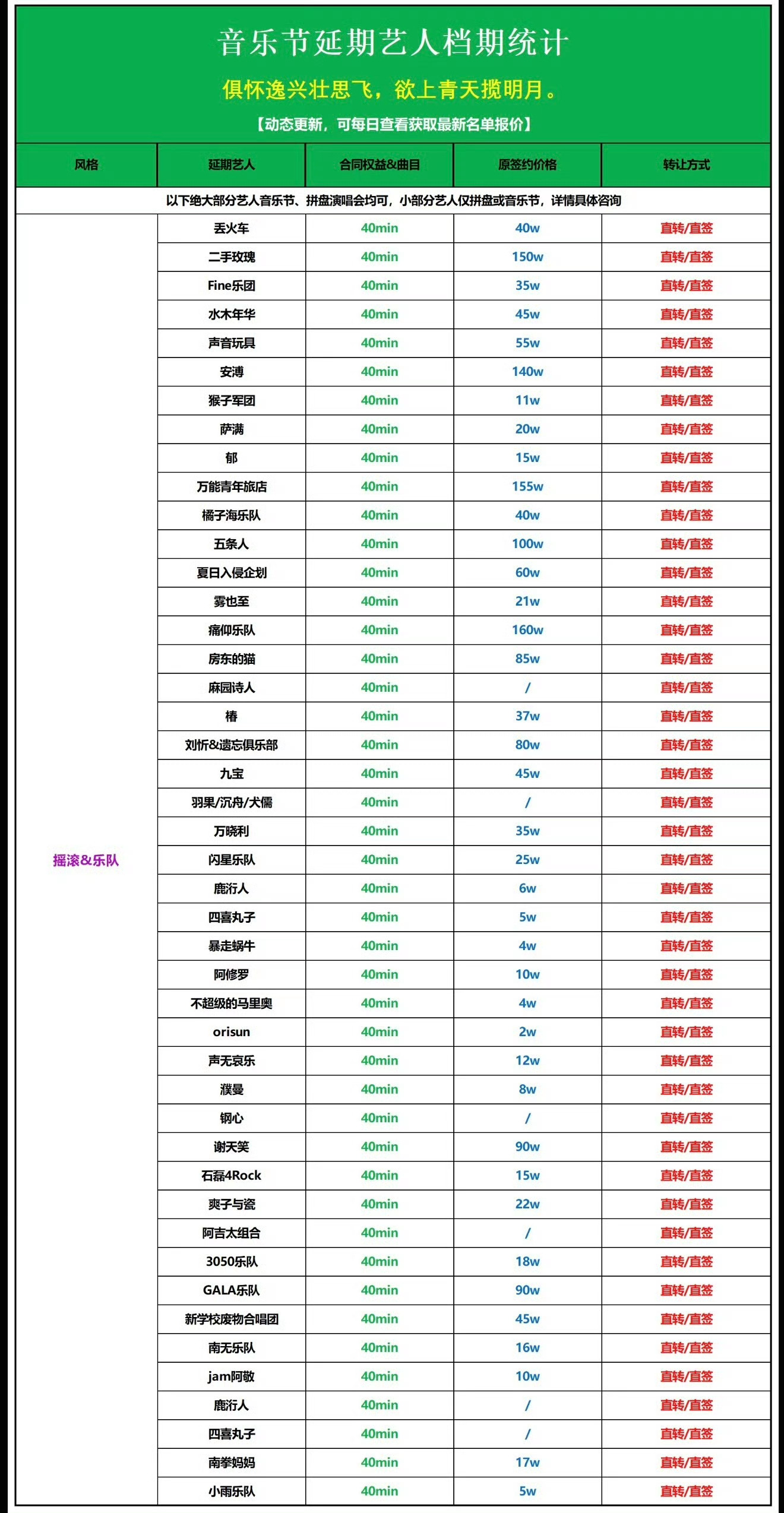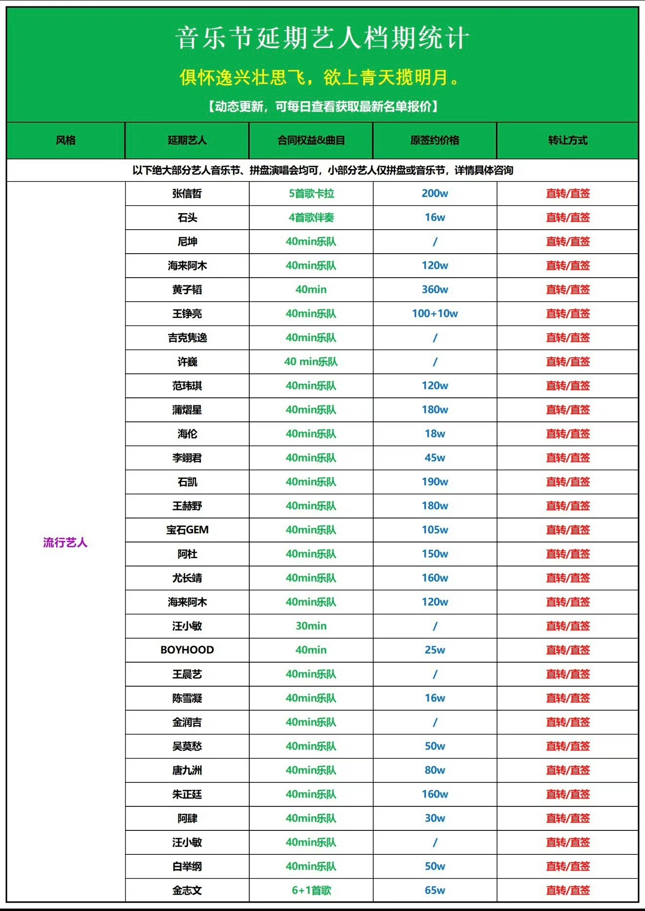 大量音乐节延期 艺人合约转让,看他们这些报价再想到梓渝报价600w我就~