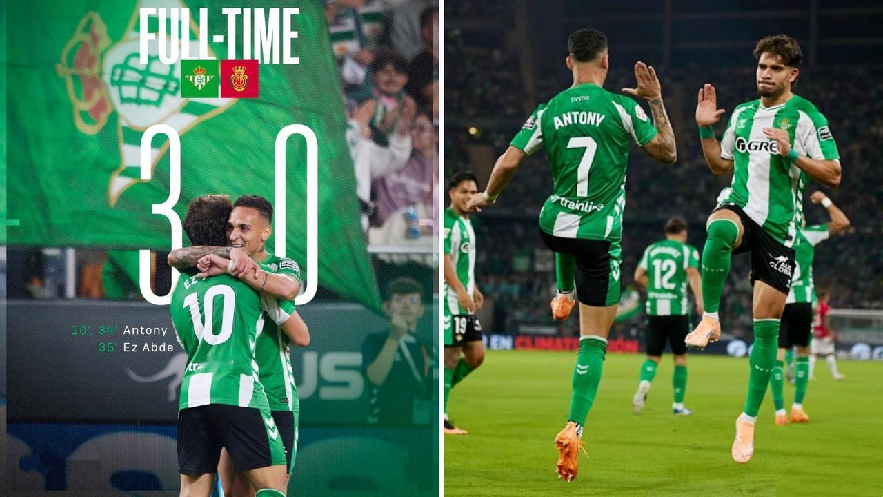欧联杯:皇家贝蒂斯主场2-0击败里昂,欧联杯4场不败。 巴坎布助攻阿布德破门,安东尼精彩挑射破门+近10场6球2助。
