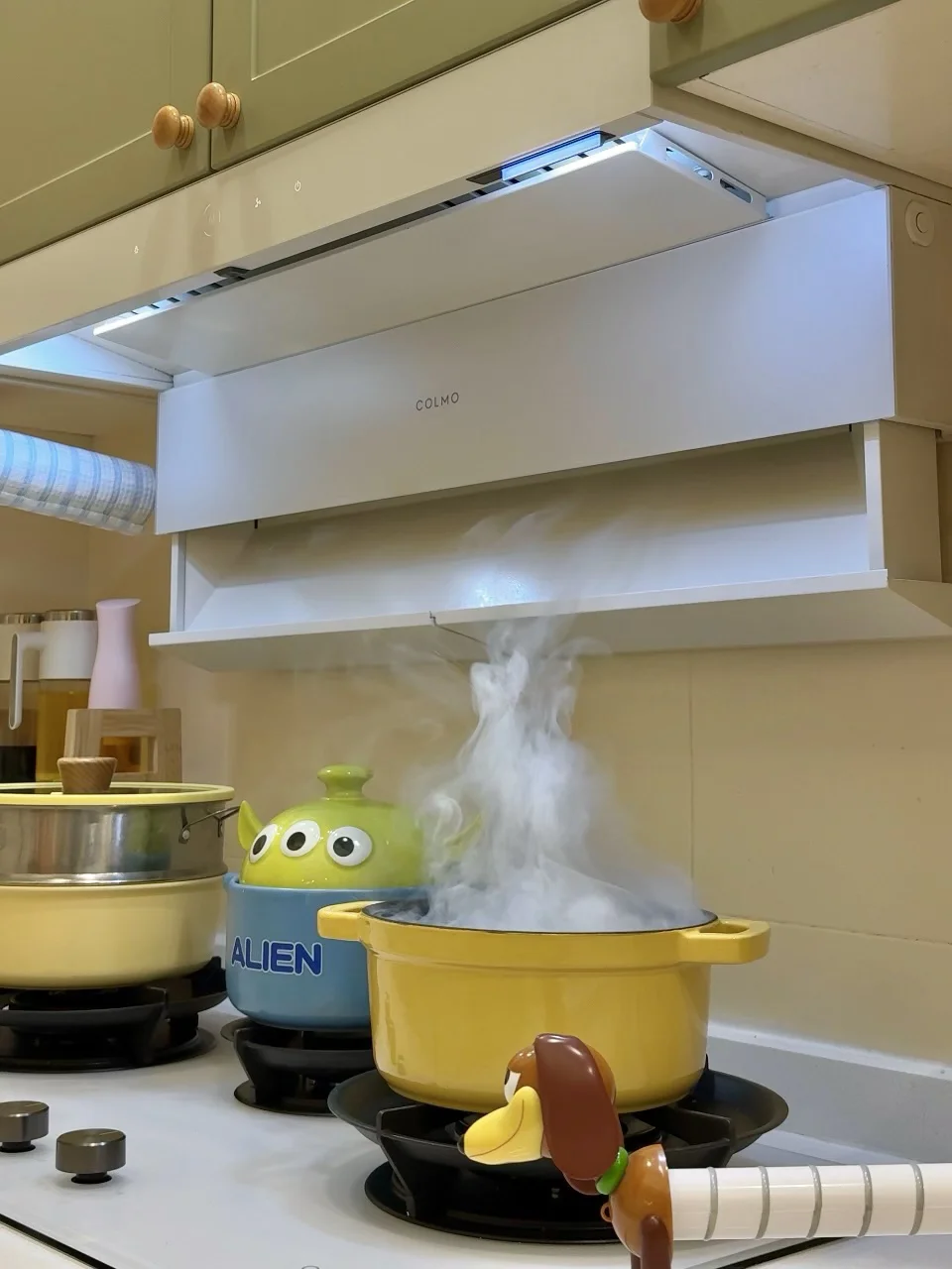 我好像真的过上了小时候期待的生活! 90后单身没娃的女生👒把196平小家布置成宫崎骏动画里的游乐园🏹 谁说好看的家不能住人、不实用? 餐厅的彩色一角,云璃白色的空调悄悄融入其中,更添了份清爽~ 不破坏满墙装饰画的层次感,却用精准控温把舒适感拉满,只让暖意或凉意悄悄裹住房间🧤连风都在配合这份宅家松弛感! 之前还总是被说厨房像过家家根本不做饭吧?其实我一日三餐,天天做饭! 🏹凭全隐美学悄悄“融”进彩色厨房的烟灶🤹🏻‍♀️超薄机身严丝合缝嵌进橱柜,云璃白的玻璃面板溅上油污一擦就干净! 做饭也能有AI全自动的仪式感,不用动手找开关,开火的瞬间,烟机自动开机,人一靠近,迎宾灯会悄悄亮起💡在外面这叫科技,在我家就是魔法啦~ 🏹好的家电该是“隐形底色”,全隐美学结合云璃白色调 COLMO云璃白系列家电一进场,就把活泼和质感搭配得刚刚好🔦 既能托住极繁风格的鲜活,又能悄悄把高级感拉满,让每个角落都好宅又好住~ 🎨就是住在这样有趣可爱且实用的家,才有力气热爱生活呀~