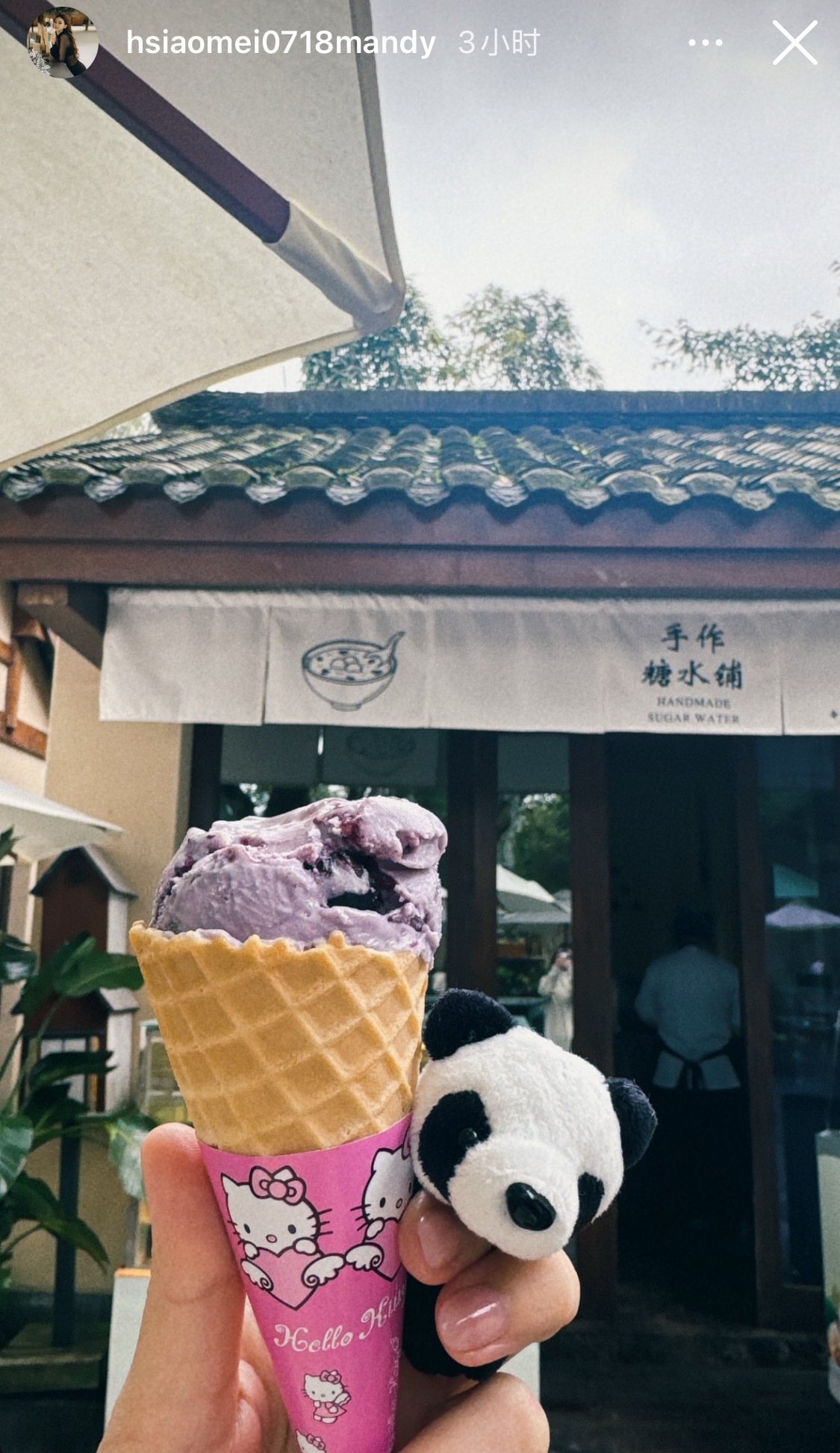 马筱梅ins更新,分享旅行,一家人在青城山玩,还吃了冰淇淋。