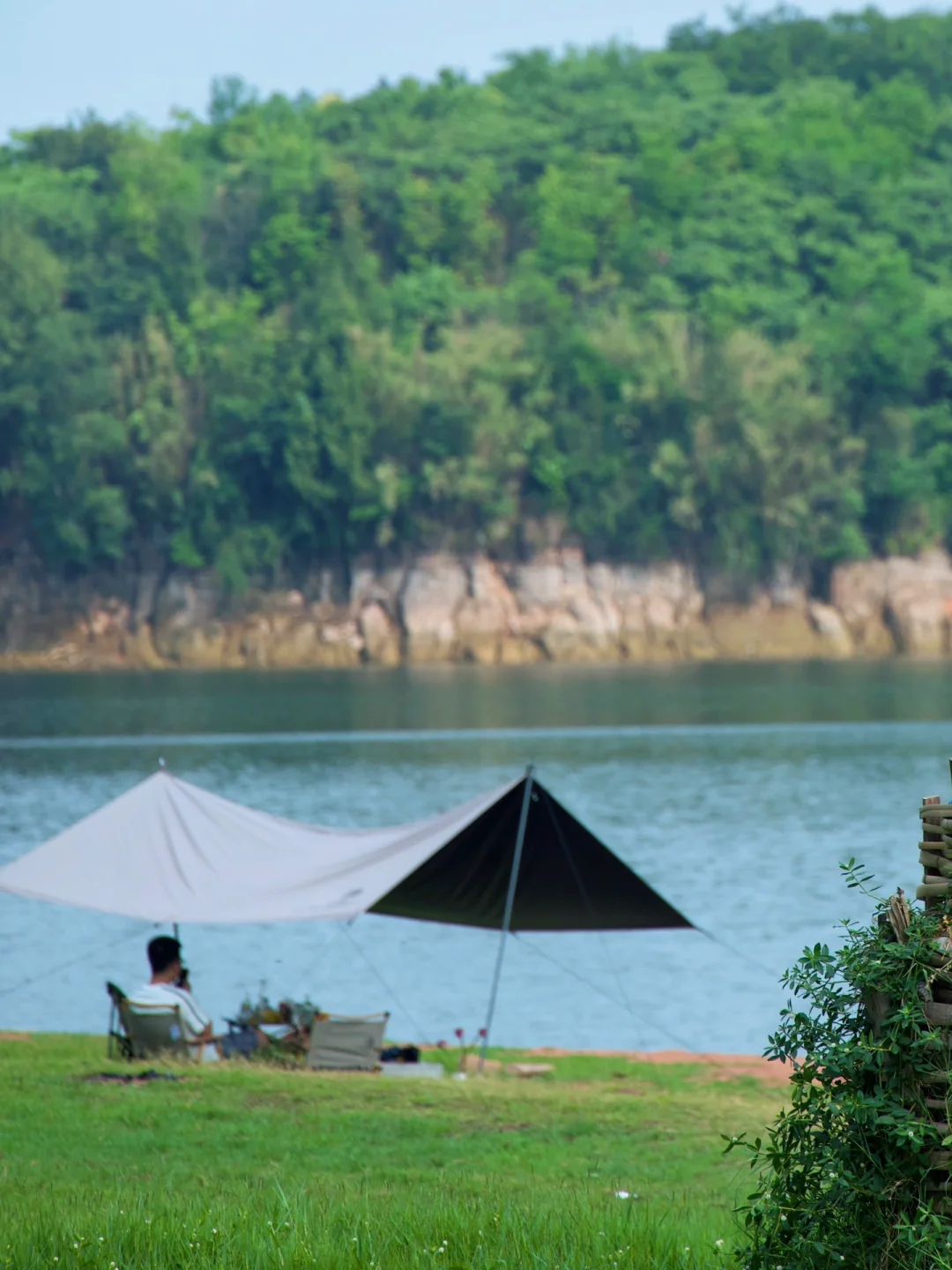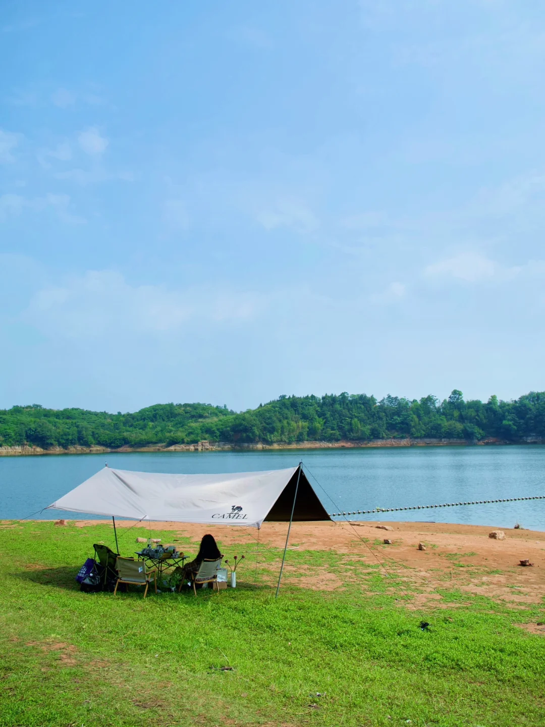 这里是个野营地,这里可以露营,钓鱼🎣(50/人),都需要自带露营装备,湖边是土地,地钉扎起来很方便(不需要锤子),小白也好操作。请大家自备垃圾袋♻️,做好无痕露营。如果上卫生间,可以去上面的农户家。因为这里是水库,水容量相对稳定,夏天也相对比较安全。
