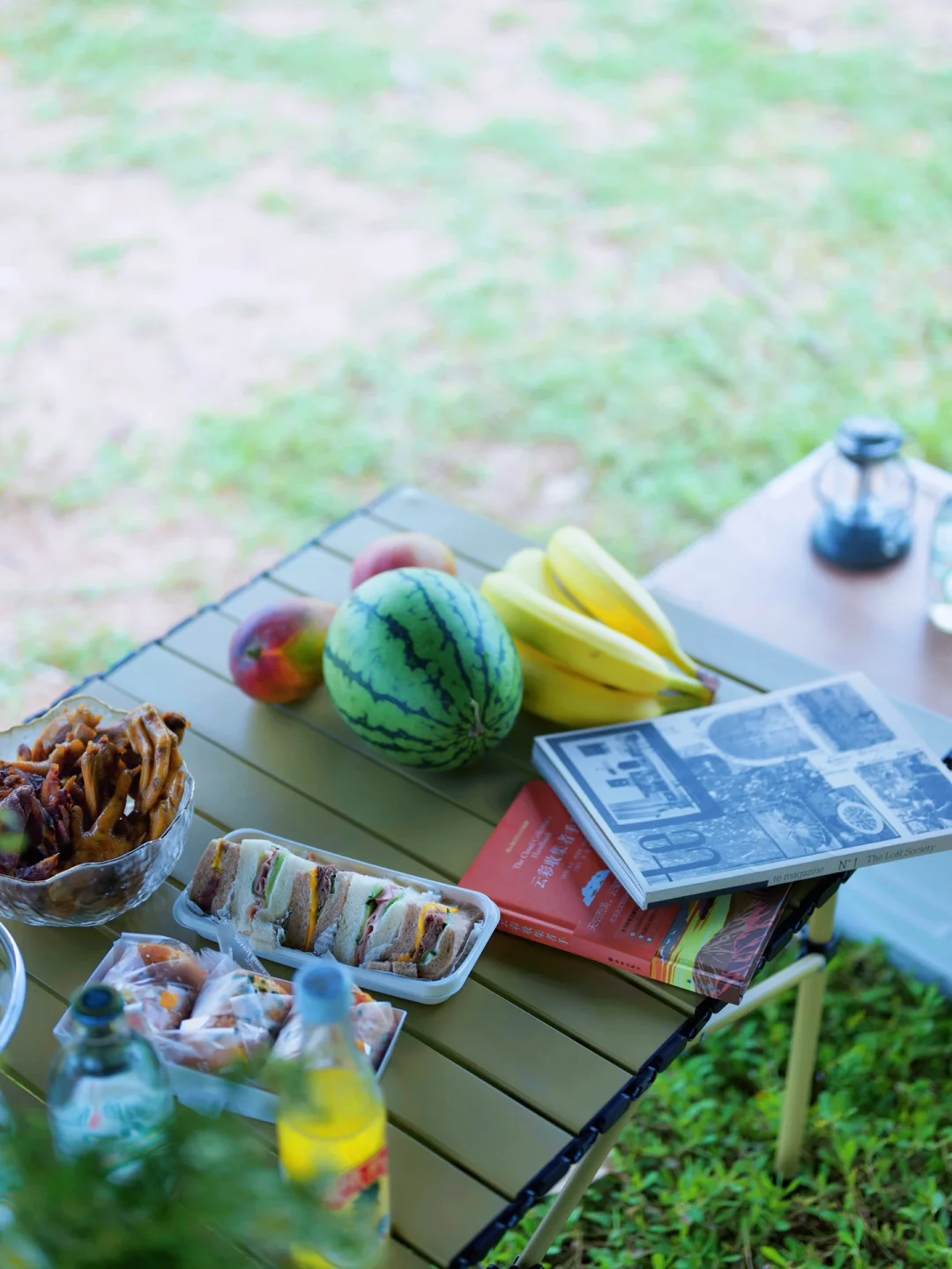 夏天露营记得带个黑胶天幕,还有轻便的折叠桌椅,再准备点吃的喝的🍉,简简单单就可以出门了。