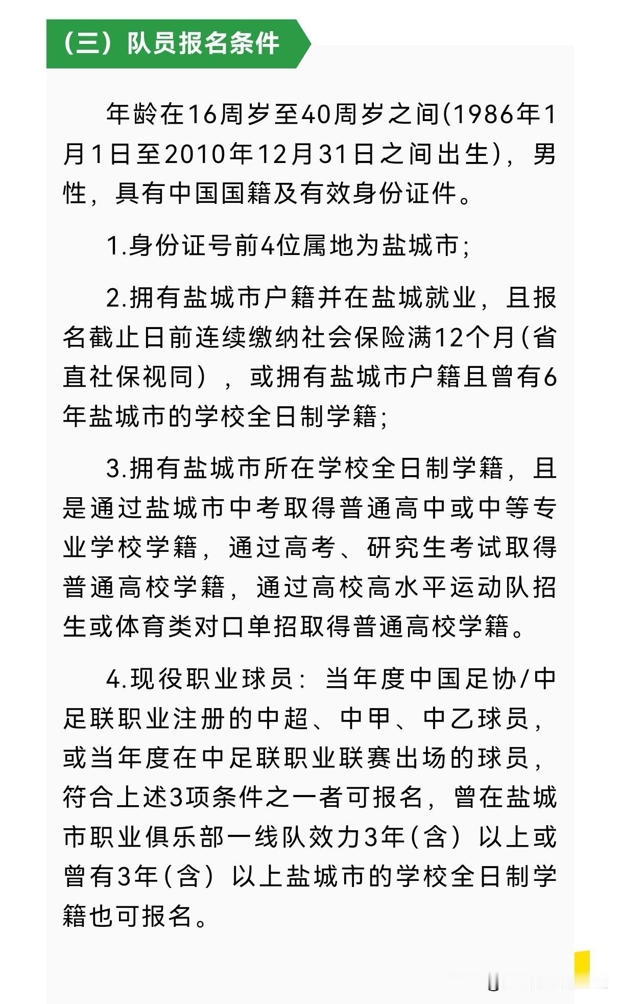 日前隔壁盐城市和扬州市公开招募2026年苏超教练和球员,其中对球员的参赛条件做出了四条严格规定。其他城市可以对号入座,基本可以作为明年苏超的参赛资格的参考了。值得关注的是现役职业球员的人数没提,这大概率会成为明年苏超各队的“胜负手”。南通队明年职业球员会报谁呢?