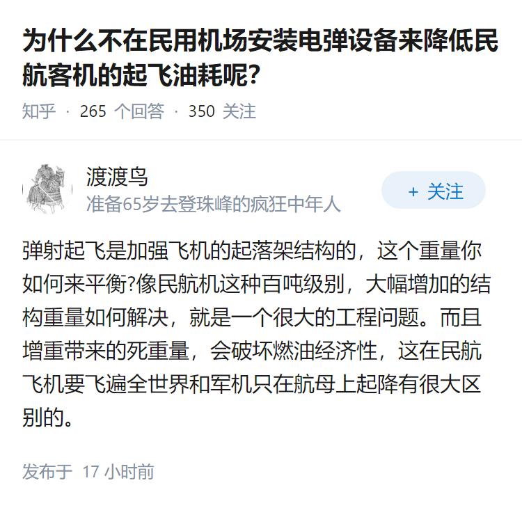 为什么不在民用机场安装电弹设备来降低民航客机的起飞油耗呢?