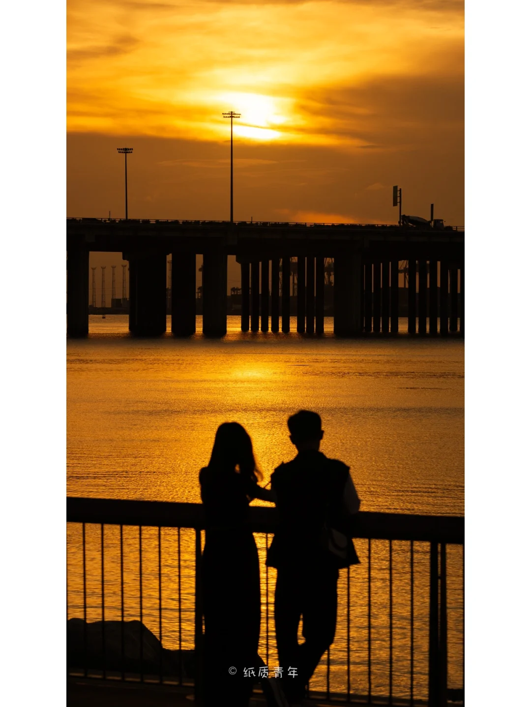 6⃣️太阳下山🌅之后可以沿着栈道吹着海风,看看摩天轮🎡,或者拍一些长曝光也是比较好的选择。