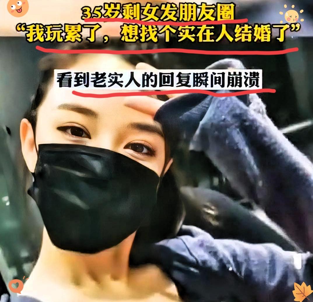 35岁女生朋友圈那句“玩累了, 想找个老实人结婚”, 配上深夜自拍,简直把“精致