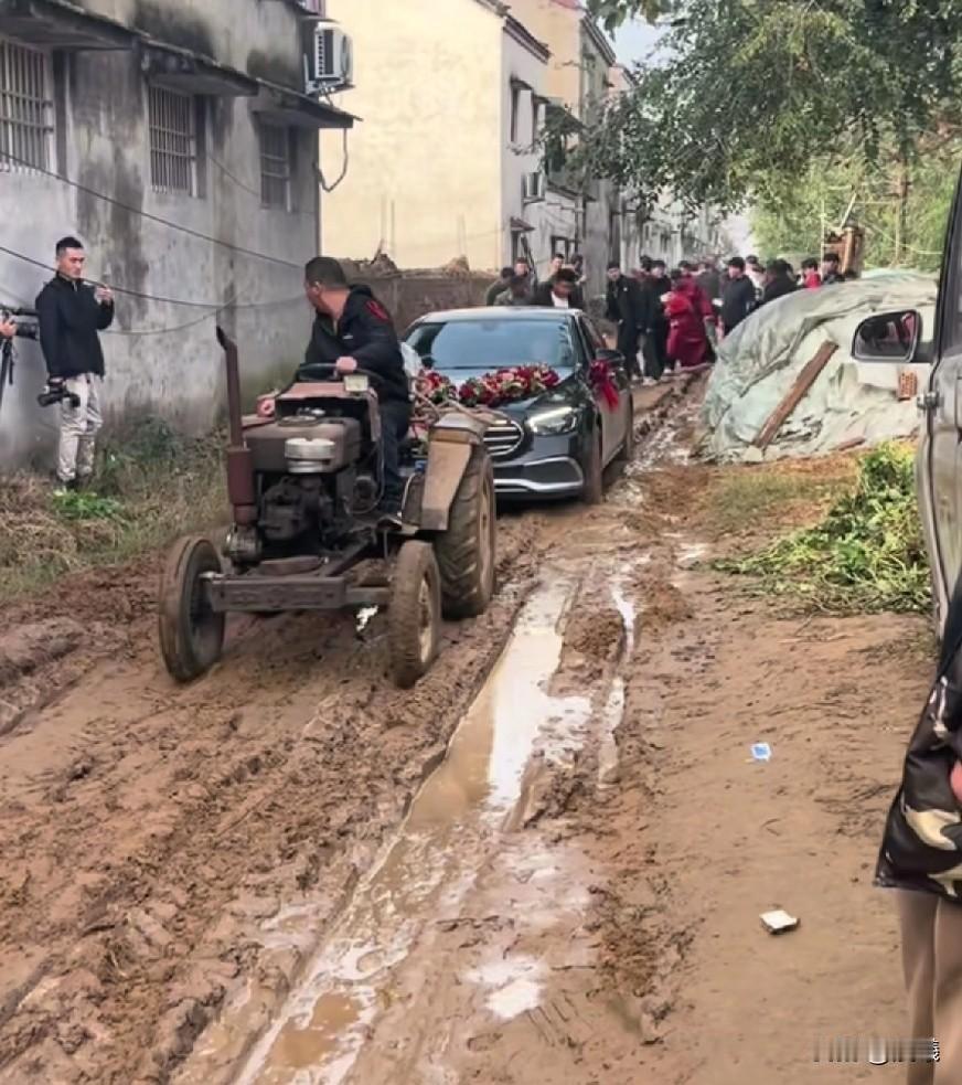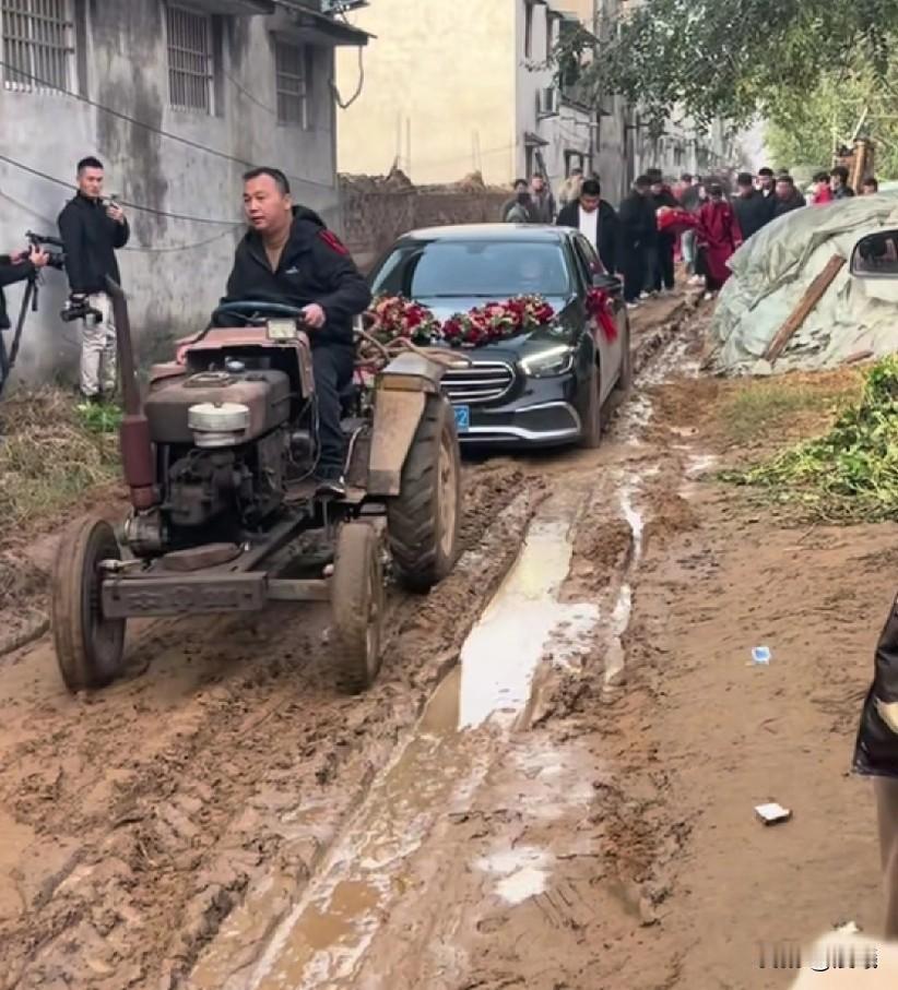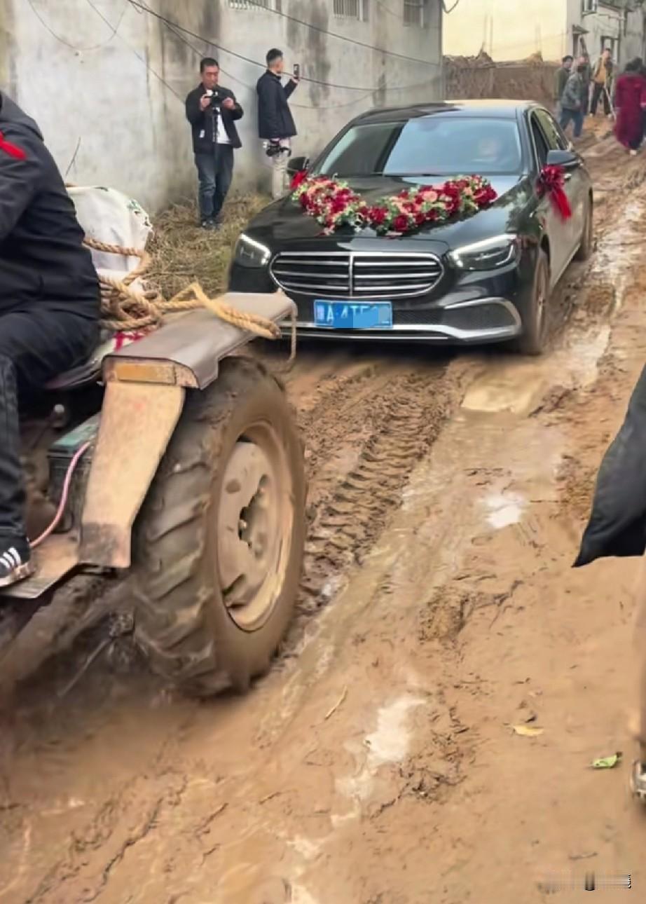 视频放着“你是风儿我是沙,缠缠绵绵到天涯”, 现实是拖拉机拉着婚车一点点在泥泞的街上蠕动。 真应了那句话:什么困难也阻挡不了爱情的脚步! 网友说:走过坑坑洼洼的泥泞,接下来全是顺顺畅畅的平坦路。 如果当地经济真是这样,主家能提前做准备,未尝不是一个快事, 不过这也是别处心裁的婚礼吧。 祝一对新人白头到老!