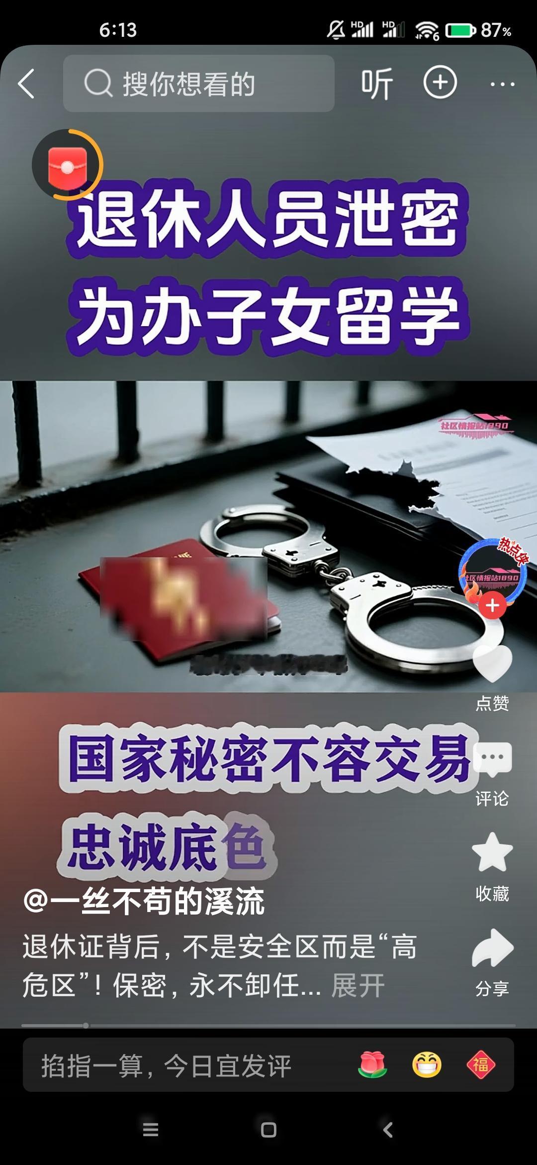 “我只是把文件带回家整理,怎么就泄密了?”“退休多年,这些老材料早没用了,谁还会管?”——这些危险的思想误区,正是泄密风险的温床。 记者从国家安全部了解到,近年来,涉密单位退休人员失泄密事件偶有发生,深刻警示我们:保密无小事,涉密人员退休后仍要时刻绷紧保密这根弦。 这段话强调了退休人员在涉密单位工作结束后仍然存在泄密风险,提醒我们“保密无小事”。具体分析如下: 思想误区的危害:文中提到“我只是把文件带回家整理,怎么就泄密了?”和“退休多年,这些老材料早没用了,谁还会管?”这些想法容易让人放松警惕,忽视保密的重要性,实际上这些都是危险的思想误区,可能成为泄密的温床。 退休人员的潜在风险:即使退休,涉密人员仍可能因疏忽或思想松懈造成信息泄露。这说明保密工作不应止步于工作岗位,而应贯穿于整个职业生涯甚至退休后。 警示与建议:国家安全部门的提醒表明,涉及涉密信息的人员,无论在职还是退休,都应保持高度的保密意识,不能放松警惕。应加强对退休人员的保密教育与管理,避免因思想松懈导致信息泄露。 总之,这段话提醒我们:保密工作是一项长期、细致的任务,任何疏忽都可能造成重大后果。每个人都应牢固树立保密意识,特别是涉密单位的退休人员,更应“时刻绷紧保密这根弦”。泄密案件 泄密罪