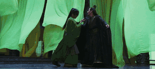 【为什么会有《英雄》这部电影?】在叙事结构上,《英雄》借鉴了《罗生门》,但不以故事为主,而是用色彩讲故事。