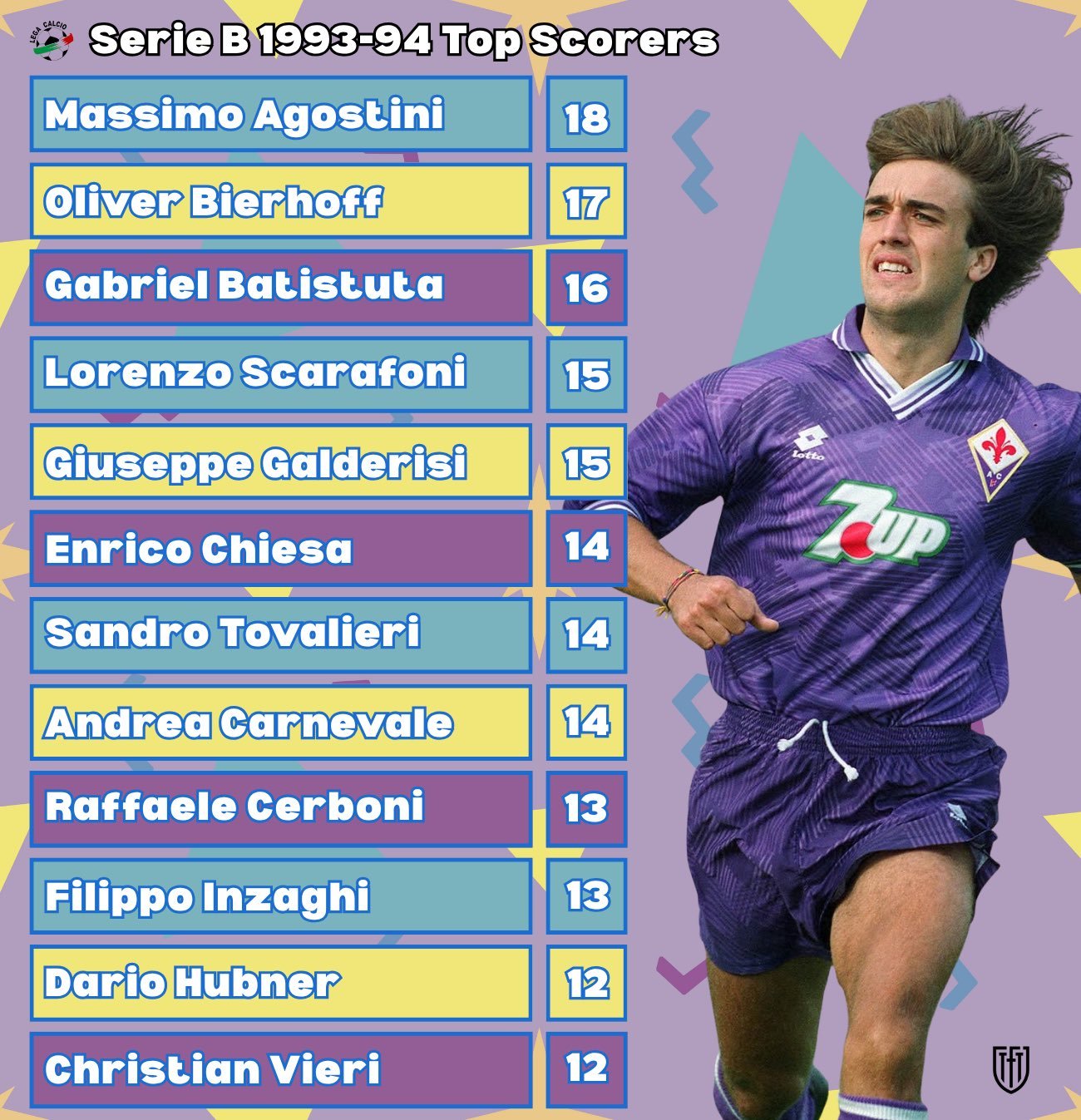 这是1993/94赛季意乙的射手榜,不是意甲冷足-时光机意大利​​​