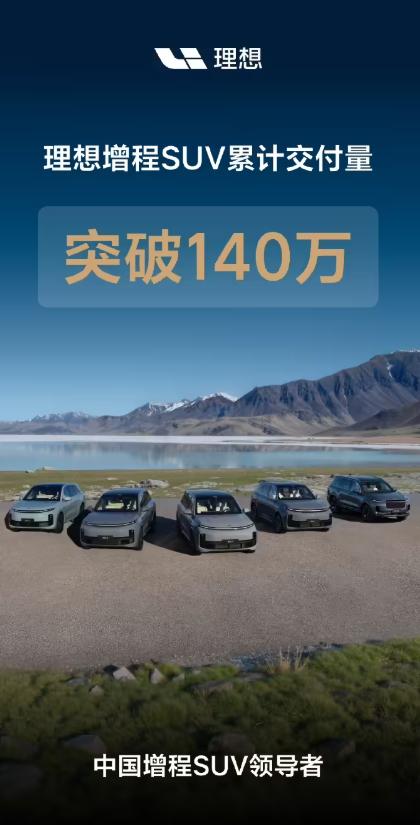 理想增程累计交付破 140 万! 理想L6累计交付破33万,2024年4月开启交付至今,中大型SUV销量冠军; 理想L7累计交付破33万,2023年3月开启交付至今,30万以上增程五座SUV销量冠军; 理想L8累计交付破25万,2022 年11月开启交付至今,30-40万六座车型销量冠军; 理想L9累计交付破28万,2022年8月开启交付至今,全尺寸SUV销量冠军; 理想ONE累计交付破20万,2021年中大型SUV 销量冠军。 理想主要还是靠增程发力,尤其是L6,纯电的表现还需再看。